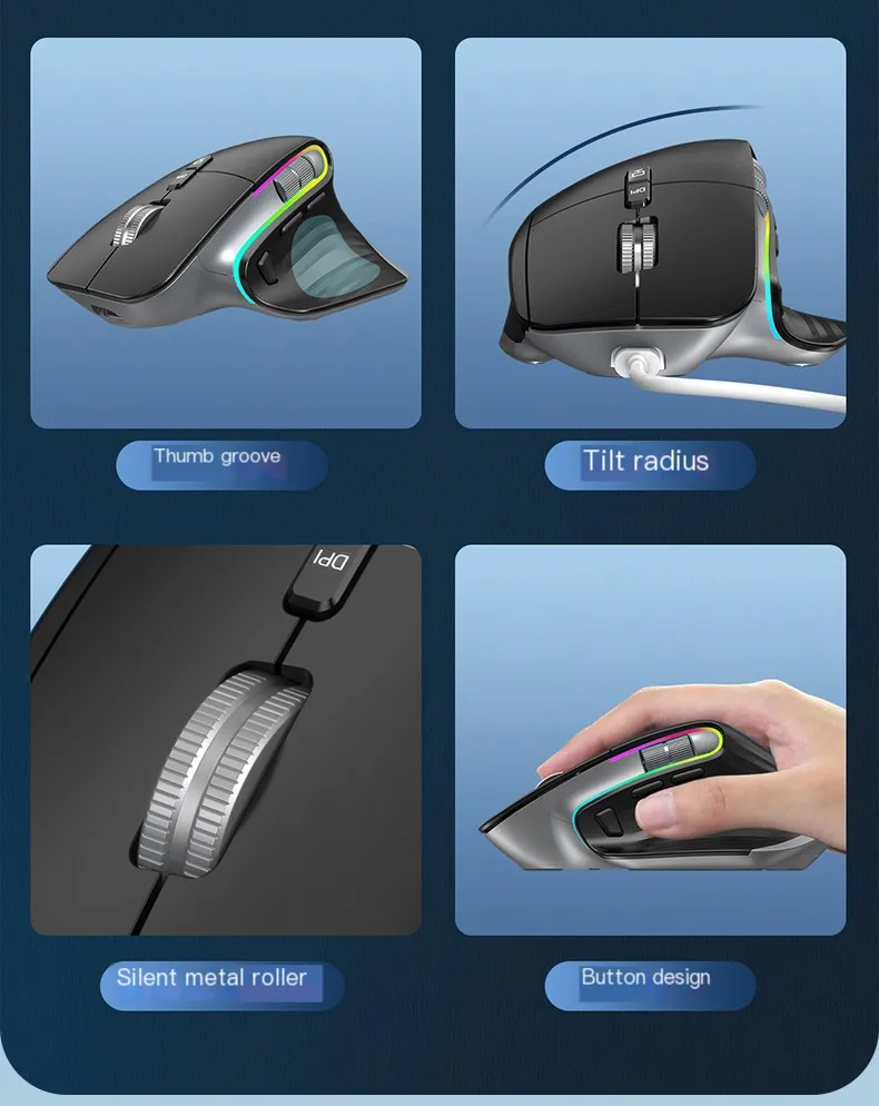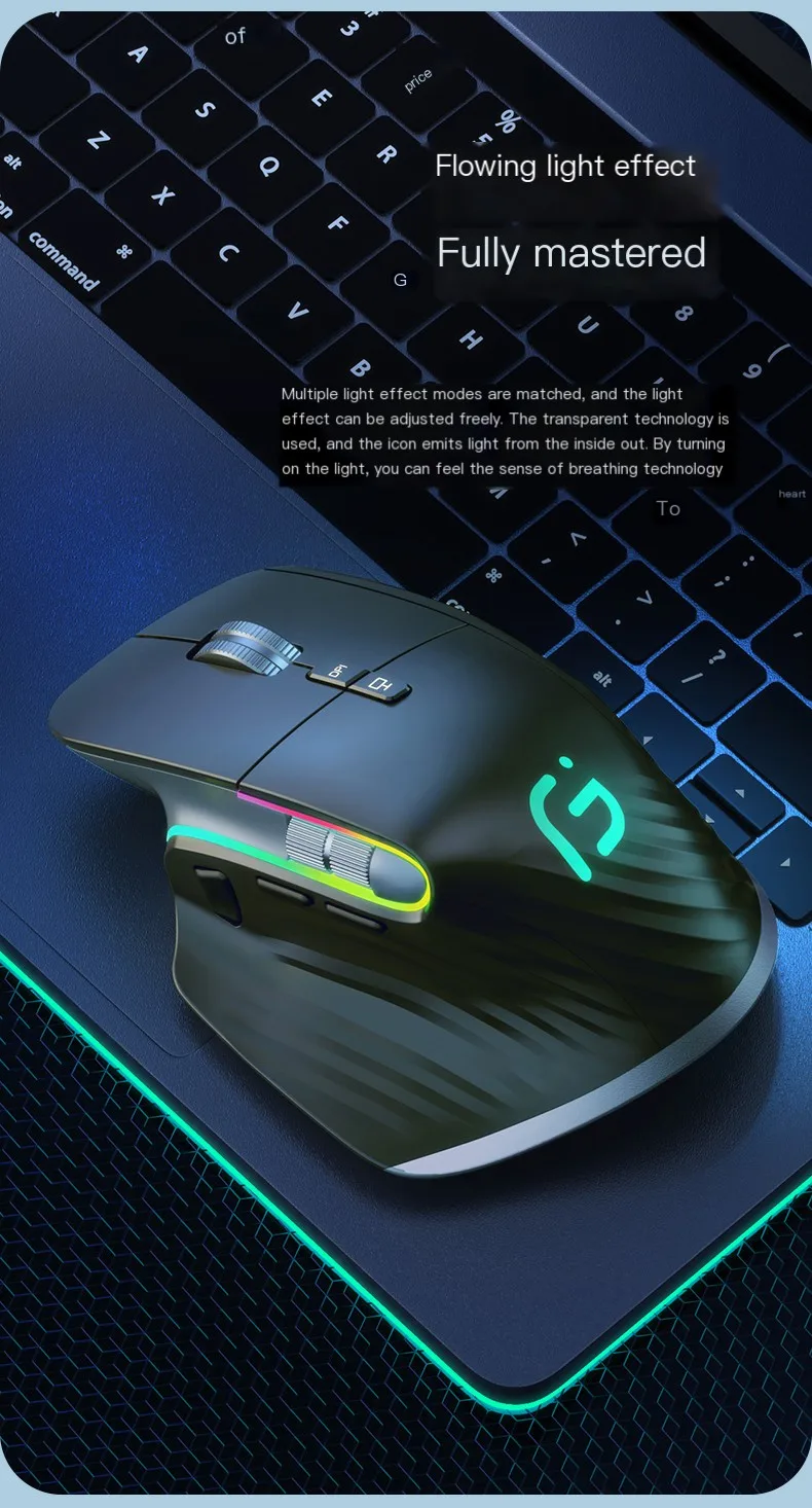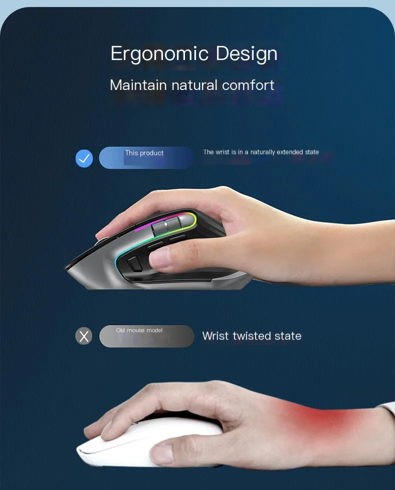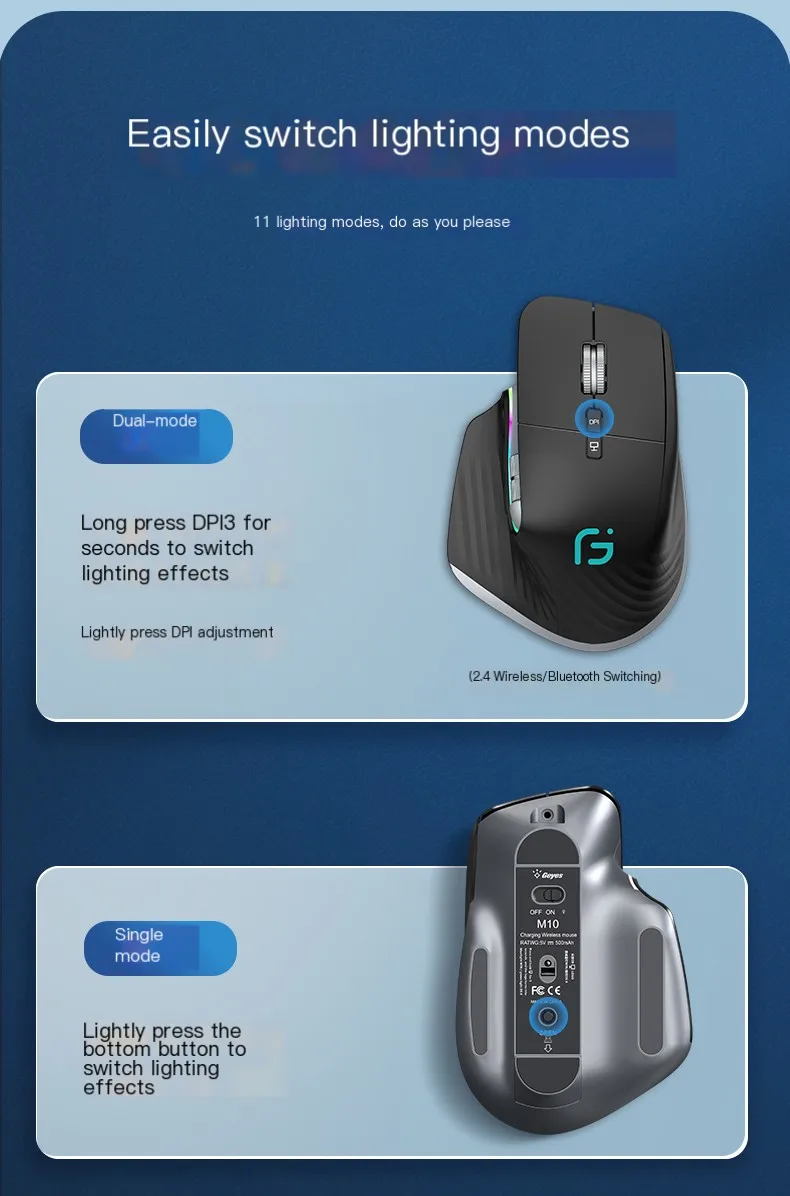 Comprar Ratón de modo Dual con Bluetooth, recargable, 11 efectos de luz, ergonómico, 4000 DPI, ajustable, silencioso, Win, IOS, uso de oficina, Juego