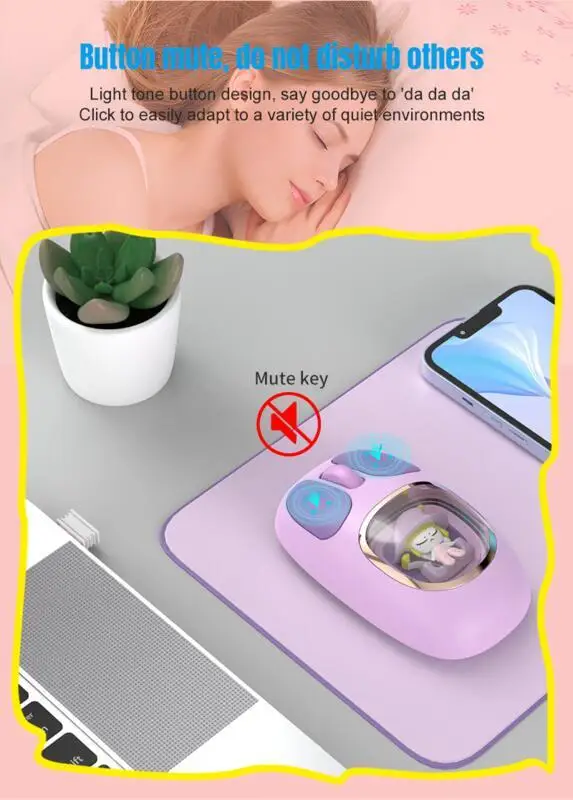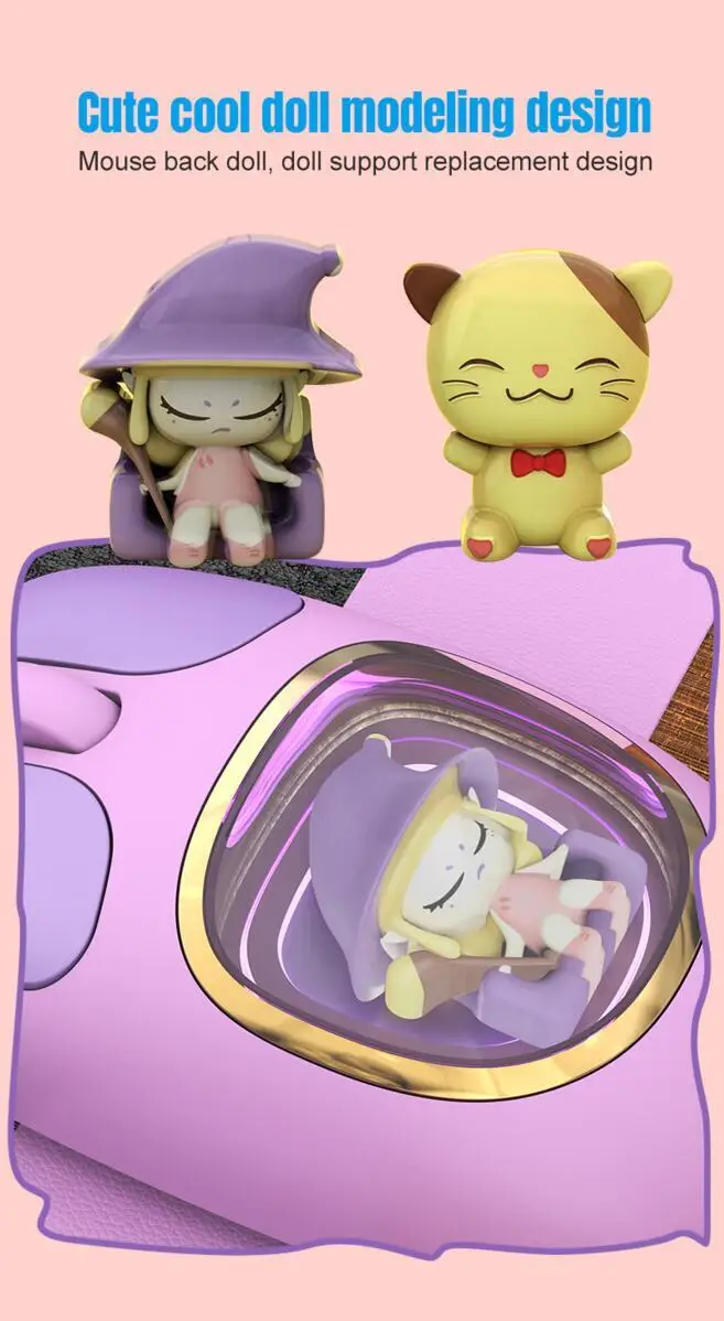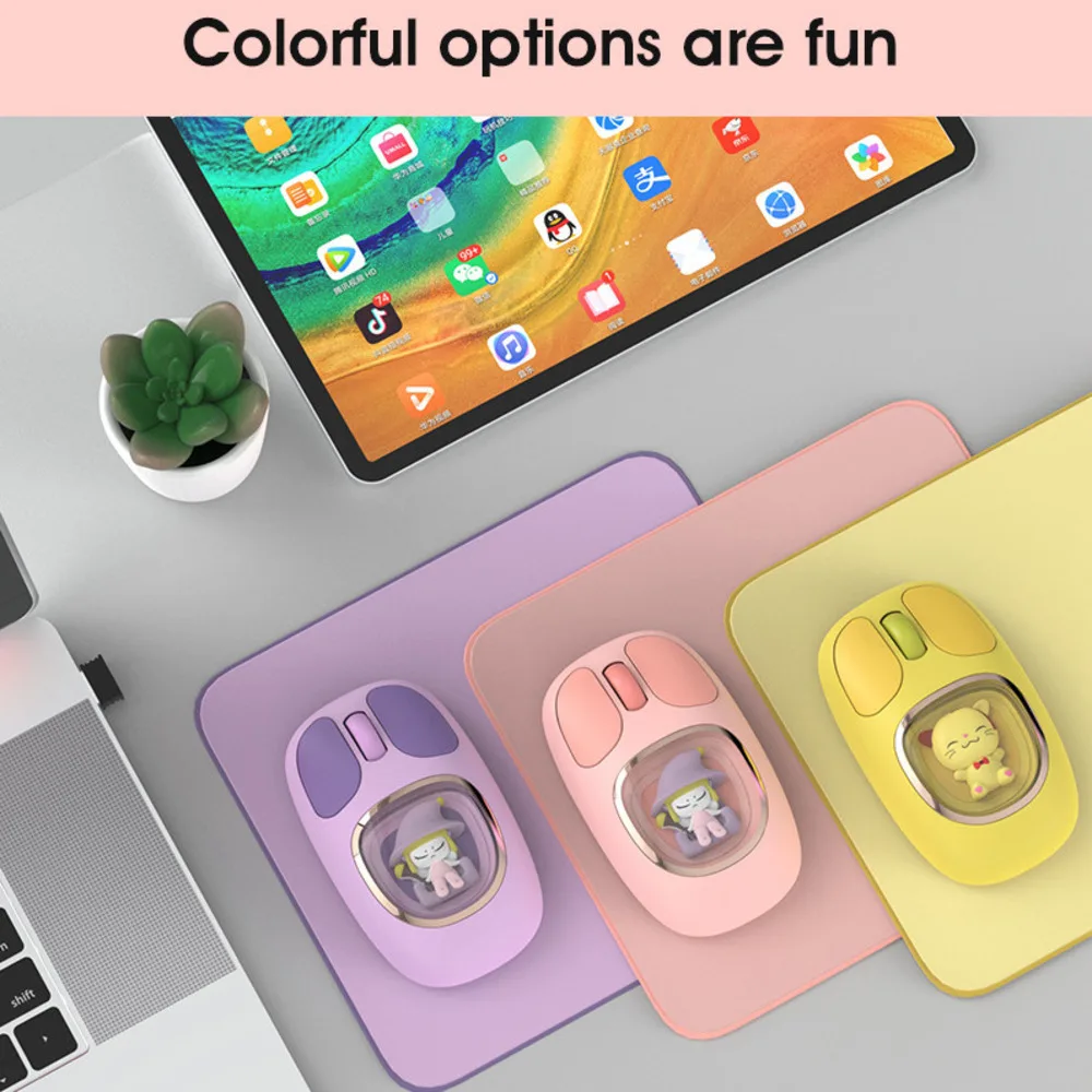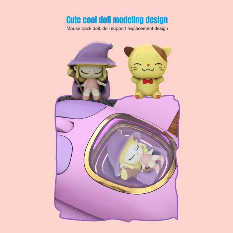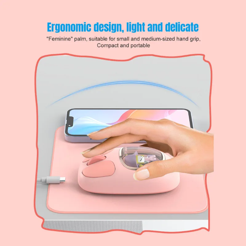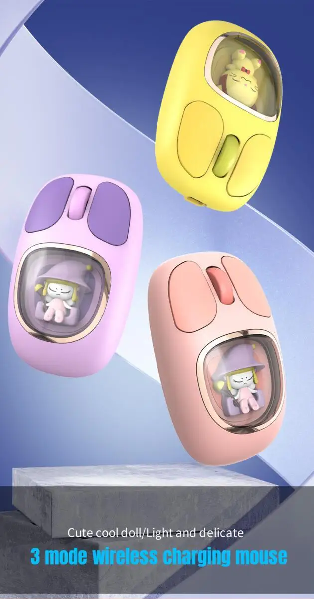 Bonita muñeca de dibujos animados transparente Bluetooth inalámbrico Tri-Mode ratón recargable retroiluminación botón mudo ratones para PC portátil