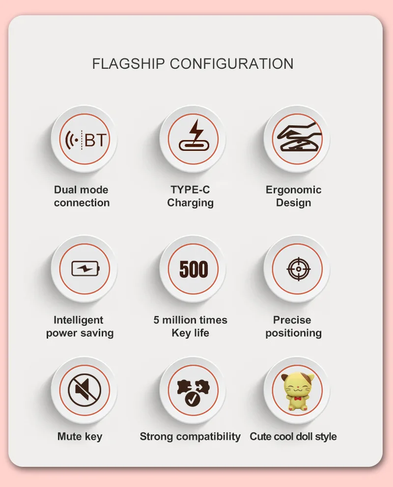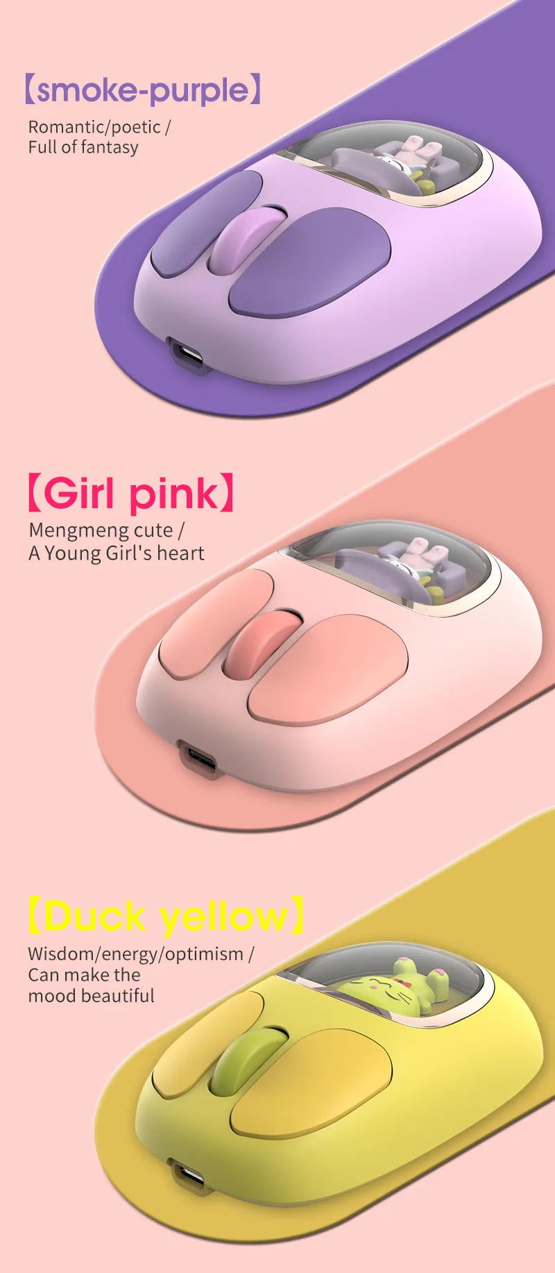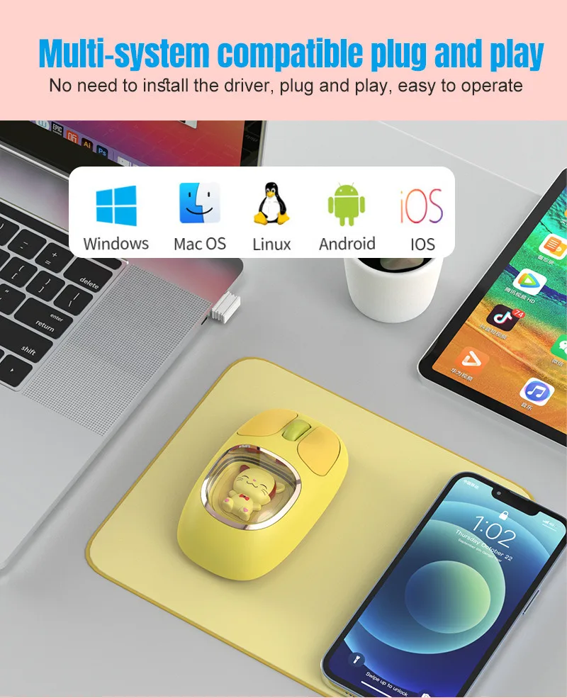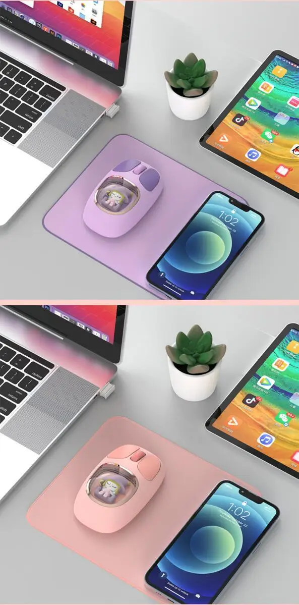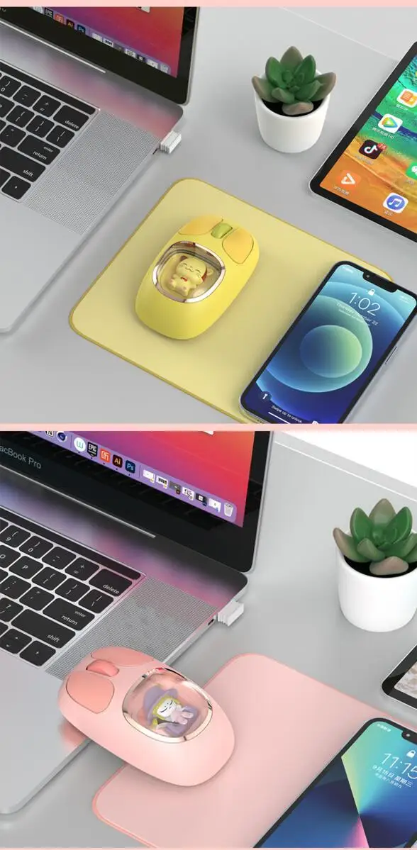 Bonita muñeca de dibujos animados transparente Bluetooth inalámbrico Tri-Mode ratón recargable retroiluminación botón mudo ratones para PC portátil