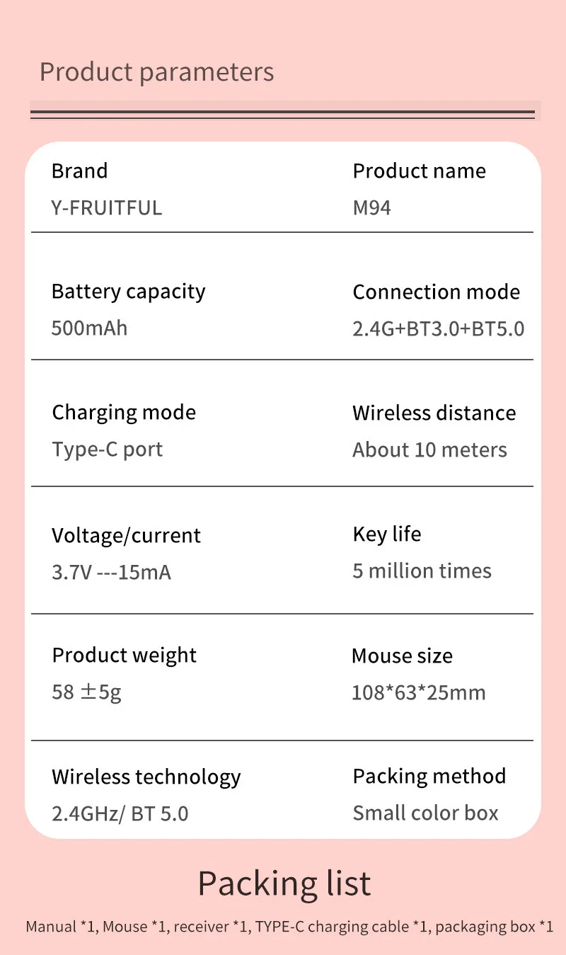 - 1 * ratón inalámbrico de modo triple