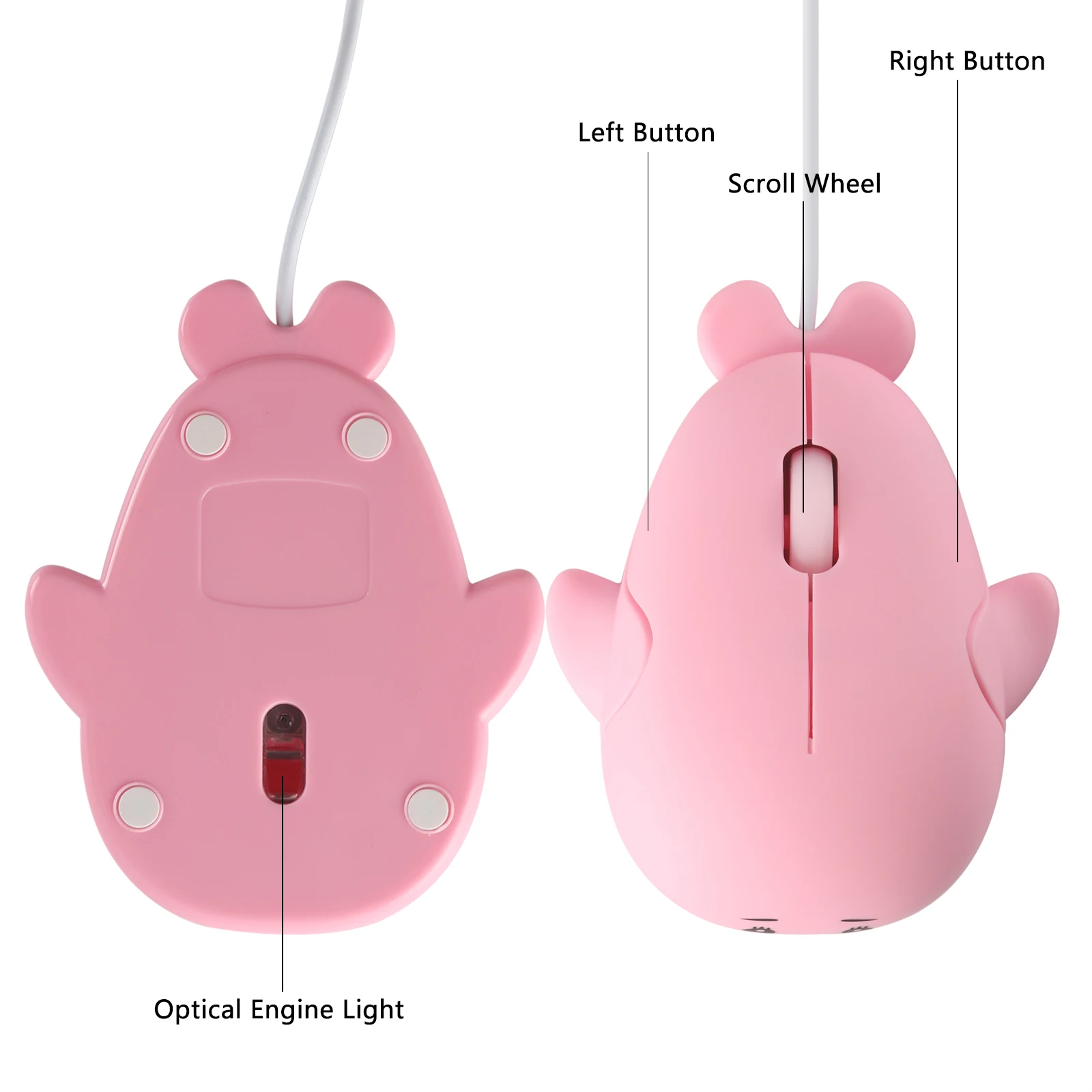 Comprar Ratón óptico 3D con cable para niños, bonito ratón Kawaii con forma de Animal, color rosa, USB, portátil, portátil, ordenador, tableta, PC, regalos