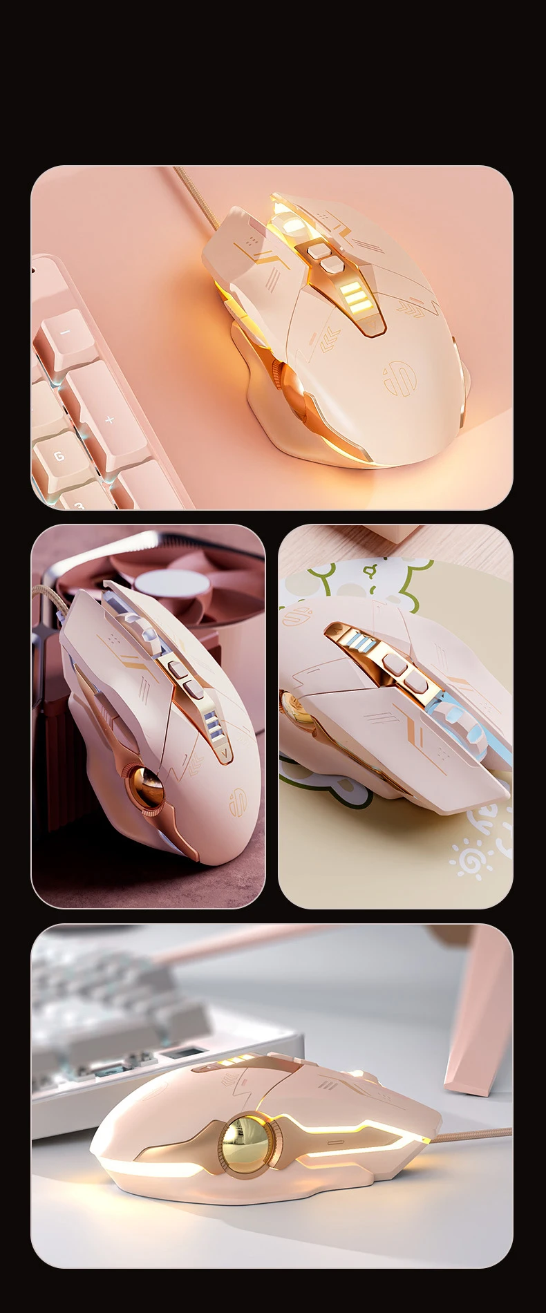 Comprar Ratón óptico con cable para videojuegos, Mouse con retroiluminación RGB, color rosa, silencioso, USB, para chica, portátil, PC, ordenador de escritorio, oficina, regalo, novedad