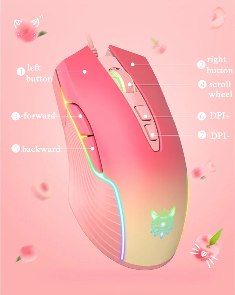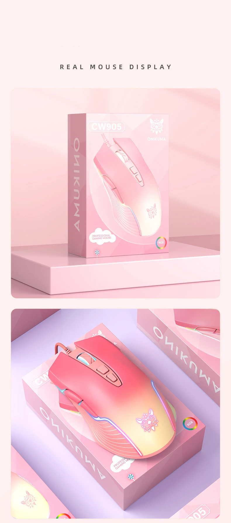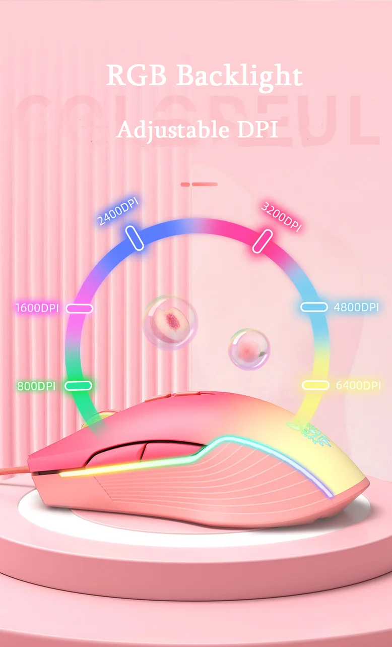 Wired Gaming Mouse Ergonomic Optical Backlight Mice Gamer Girl 6400 DPI RGB Backlit Mouse For PC Laptop Computer Tablet Desktop
