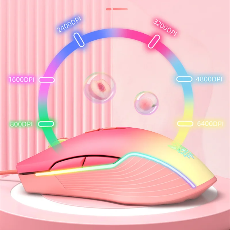 Wired Gaming Mouse Ergonomic Optical Backlight Mice Gamer Girl 6400 DPI RGB Backlit Mouse For PC Laptop Computer Tablet Desktop