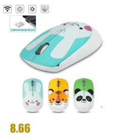 Comprar Ratón óptico inalámbrico de 2,4g para ordenador, periférico ergonómico con dibujos animados, silencioso, 3D, USB, para portátil, tableta, PC, oficina y hogar