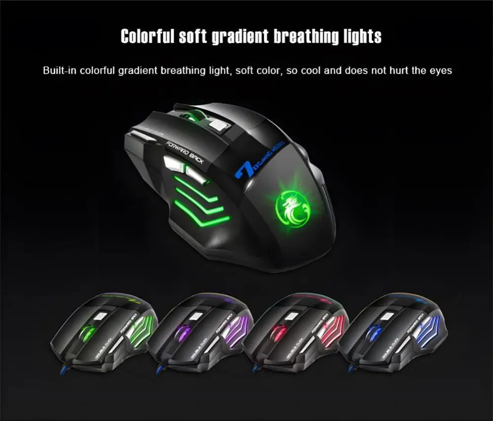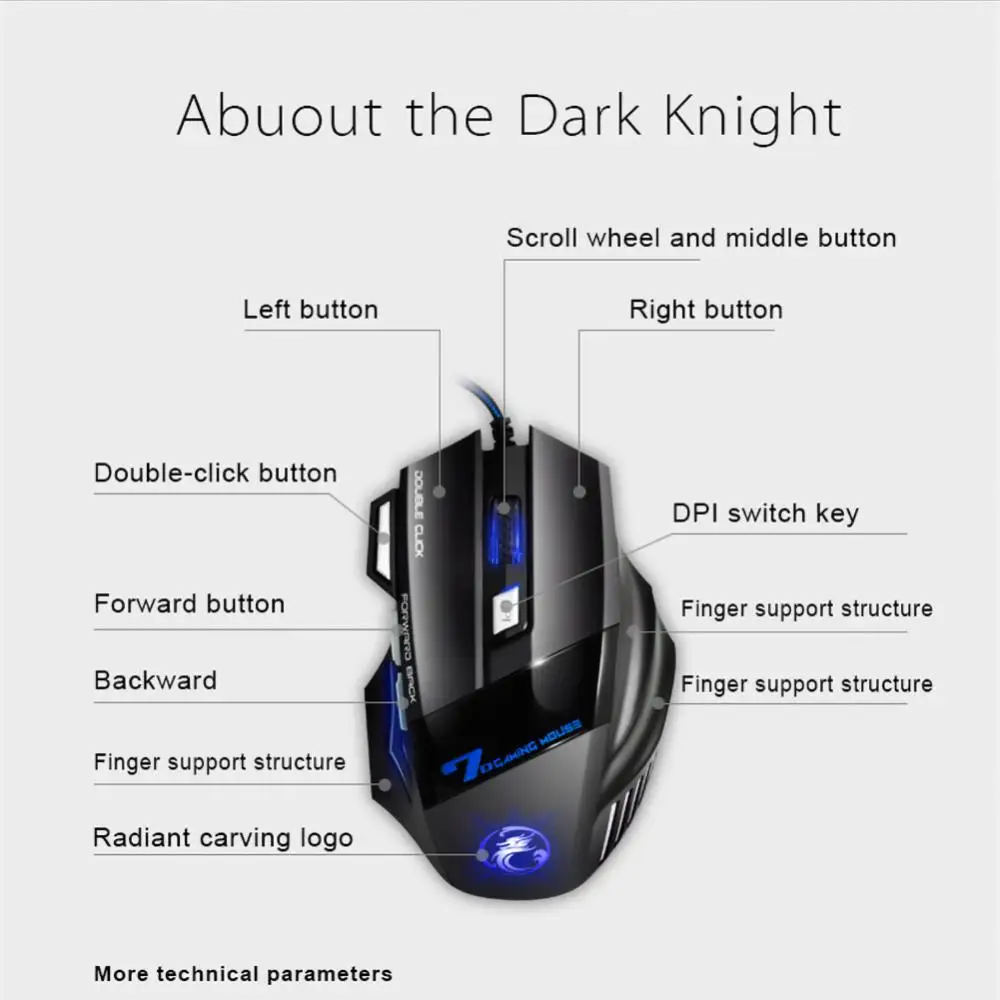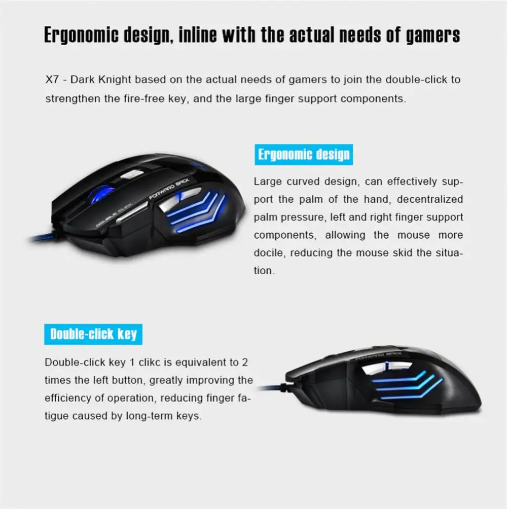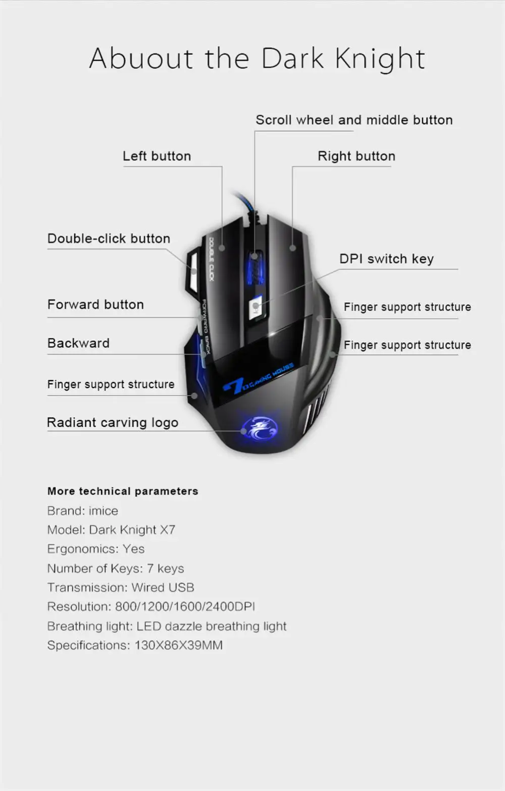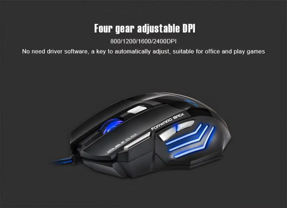 Botones: 7 botones con rueda de desplazamiento (dos botones laterales, interruptor DPI, botón de potencia de fuego)