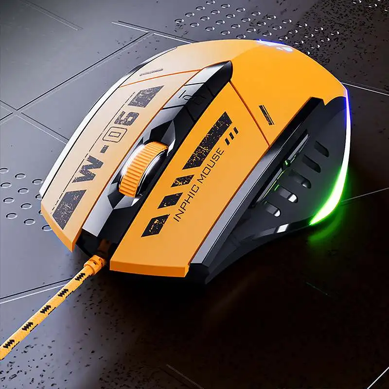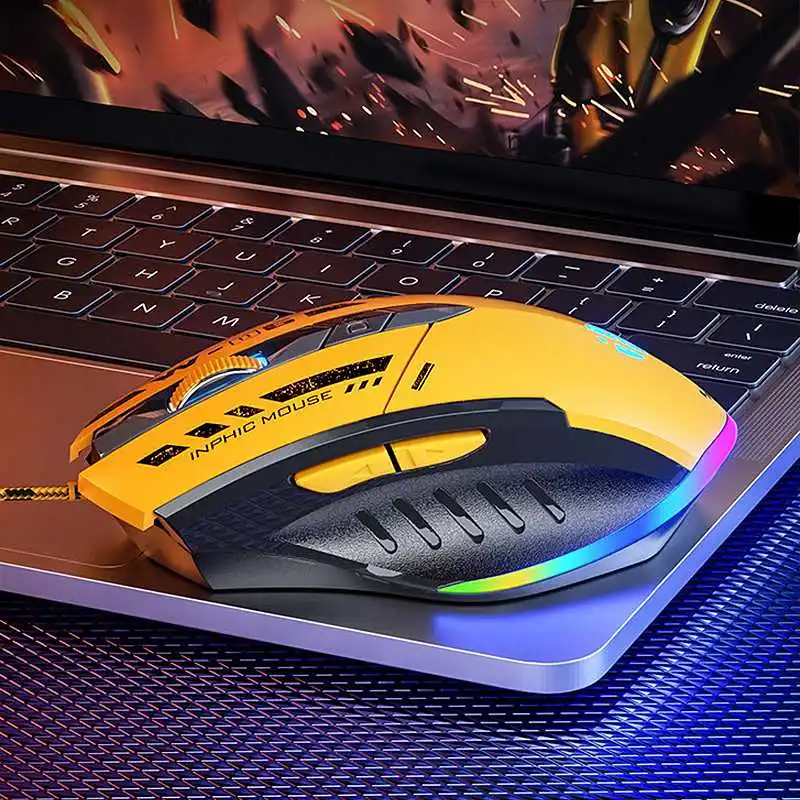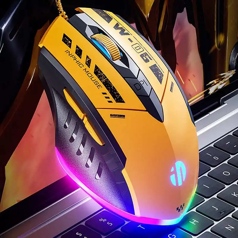 Comprar Ratón óptico silencioso para juegos, periférico con cable RGB de 200-12800DPI, 6 teclas, programación Macro, USB, para PC, portátil, ordenador y oficina