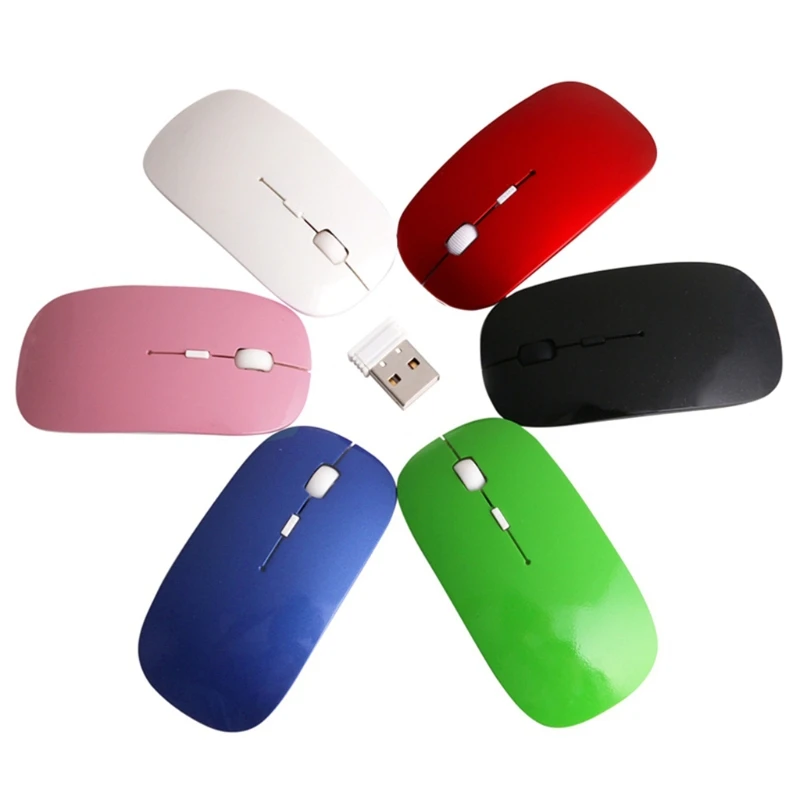 Ratón óptico inalámbrico USB ultrafino de Color caramelo, receptor de 2,4G, ratón superdelgado, ordenador inalámbrico, PC, portátil y de escritorio