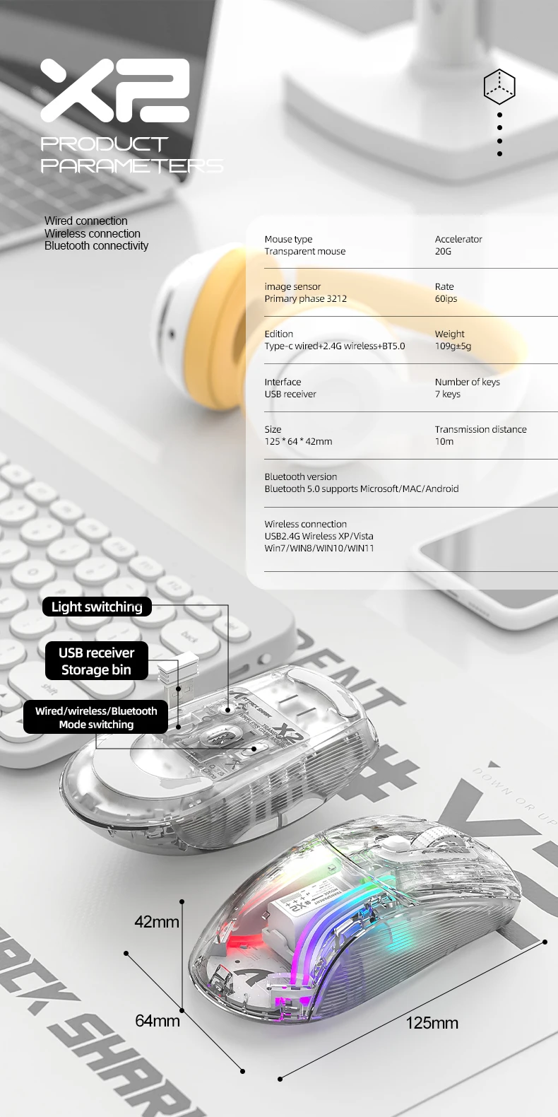 --1.Diseño completamente transparente, geniales efectos de iluminación RGB.