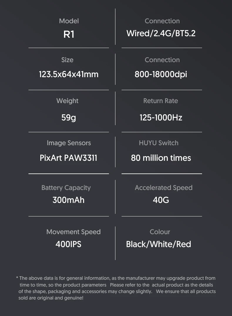 • Sensor de juego PixArt p3311 :Equipado con el sensor de juego PixArt p3311, este ratón ofrece una precisión excepcional para un rendimiento de juego inigualable.