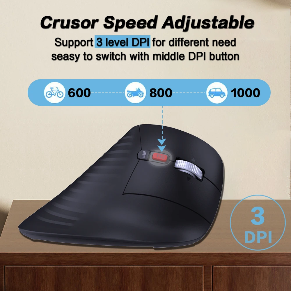Desplazamiento inteligente infinito:El mouse vertical ergonómico cuenta con una avanzada rueda de desplazamiento infinita que cambia automáticamente entre modos precisos y rápidos según la velocidad de desplazamiento.Admite un desplazamiento suave en 4 direcciones para una navegación sin esfuerzo a través de páginas largas, solo un giro suave.