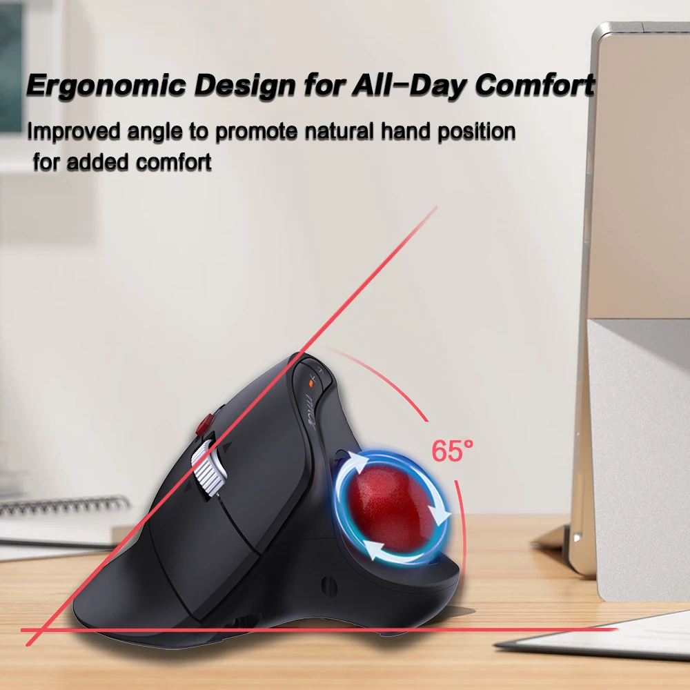 Trackball controlado por el pulgar:Navegue con facilidad usando el pulgar en este mouse inalámbrico, reduciendo el movimiento de manos y brazos.Ayudando a minimizar la tensión y la fatiga, el mouse de oficina es perfecto para largas horas en el escritorio.