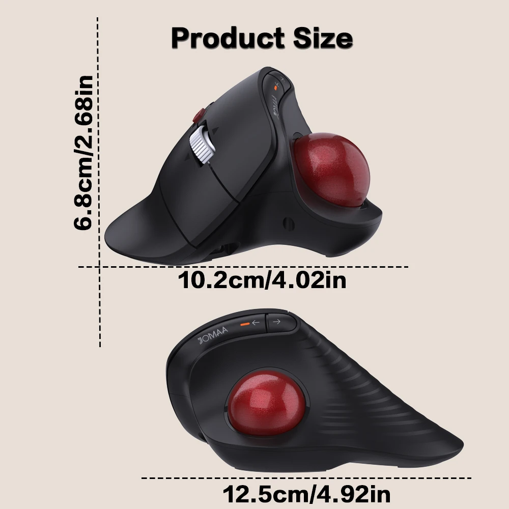 Trabaje en cualquier lugar y sin esfuerzo: la navegación Trackball le permite trabajar con precisión en cualquier superficie pequeña, como una pequeña mesa de café, una bandeja para asiento de avión o su sofá en casa. No hay necesidad de espacio adicional ni de alfombrilla para ratón. Este mouse vertical inalámbrico para computadora portátil y PC es su compañero de trabajo confiable