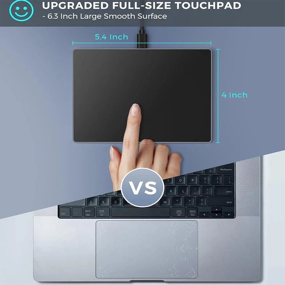 Trackpad de tamaño completo con multitáctil mejorado: mejore su navegación con el panel táctil externo seenda, que cuenta con capacidades multitáctiles que admiten gestos de hasta cuatro dedos.Seleccione, arraste, haga zoom, desplace y active sin esfuerzo funciones como "Buscar", cambie misiones o acceda al centro de operaciones con solo unos pocos toques.La generosa pantalla táctil de 6,3 pulgadas proporciona un área activa espaciosa de 5,4*4 pulgadas en un perfil ultradelgado de solo 0,16 pulgadas, lo que la hace más elegante que el Magic Trackpad