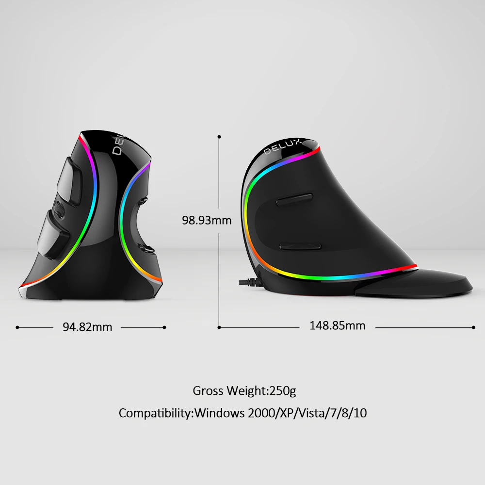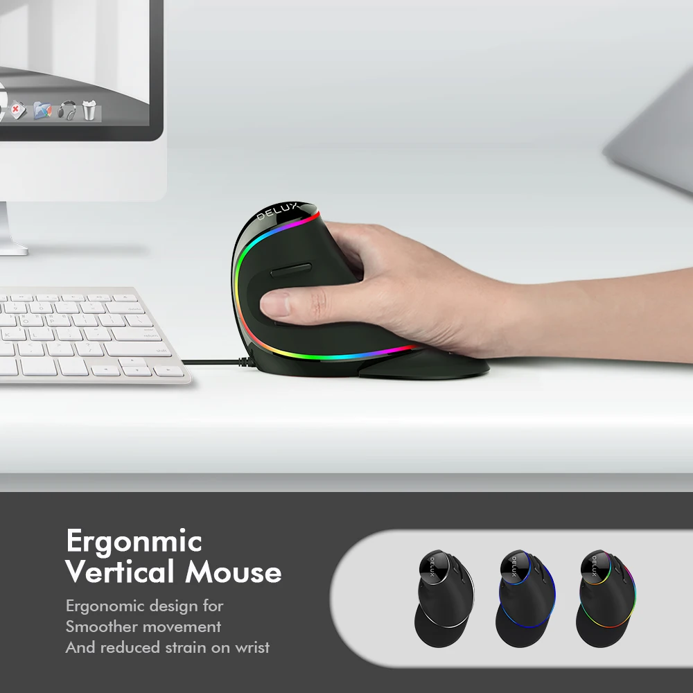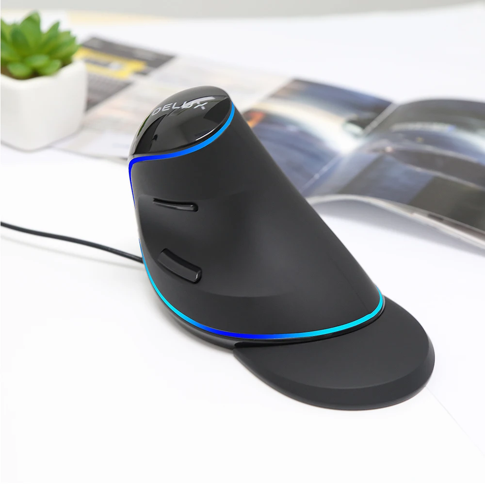 Comprar Ratón Vertical Delux M618 PLUS para juegos, ratón ergonómico con cable, inalámbrico, 6 botones, 4000 DPI, óptico, mano derecha para PC y portátil