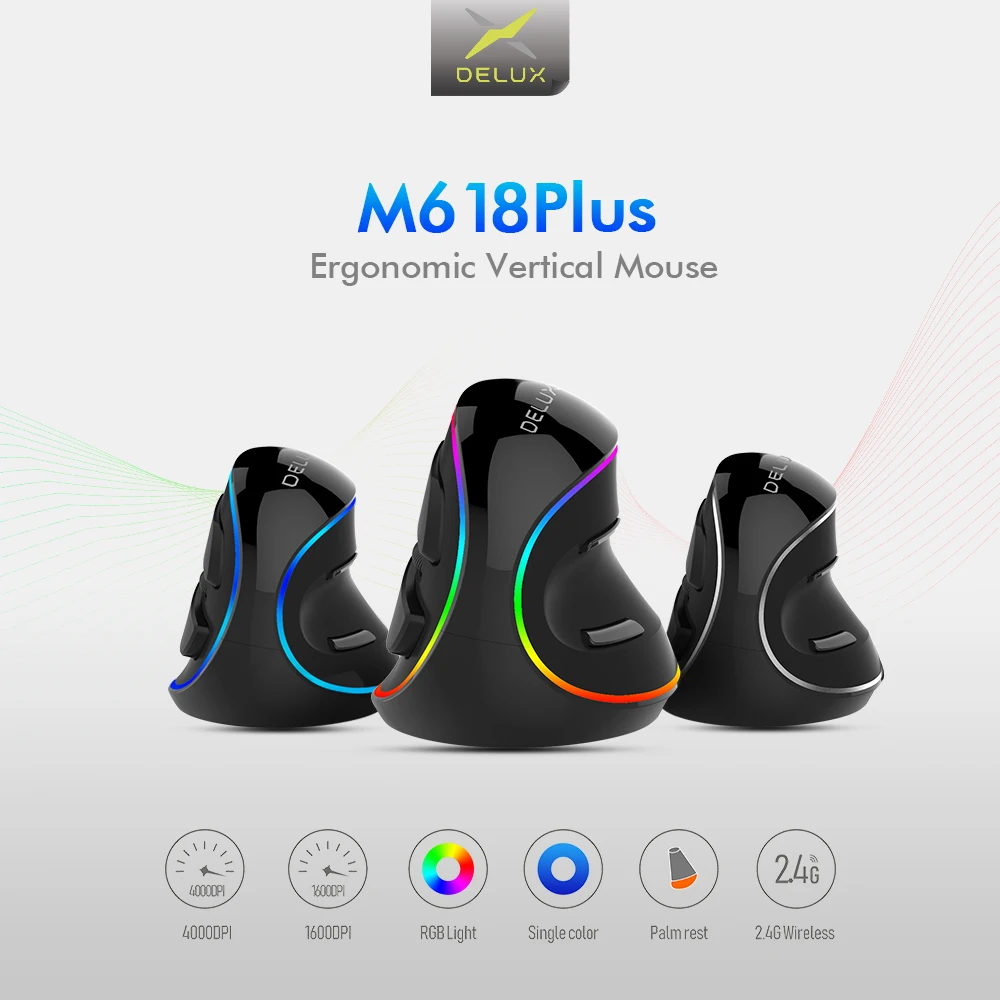 Delux M618 PLUS Ergonomía Vertical Gaming Mouse con cable 6 botones 4000 DPI Óptico RGB Ratones inalámbricos para mano derecha para PC portátil