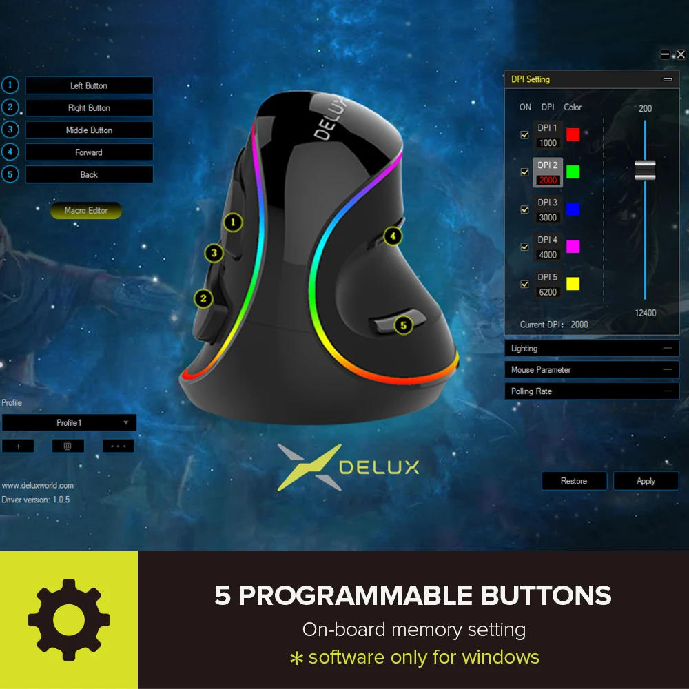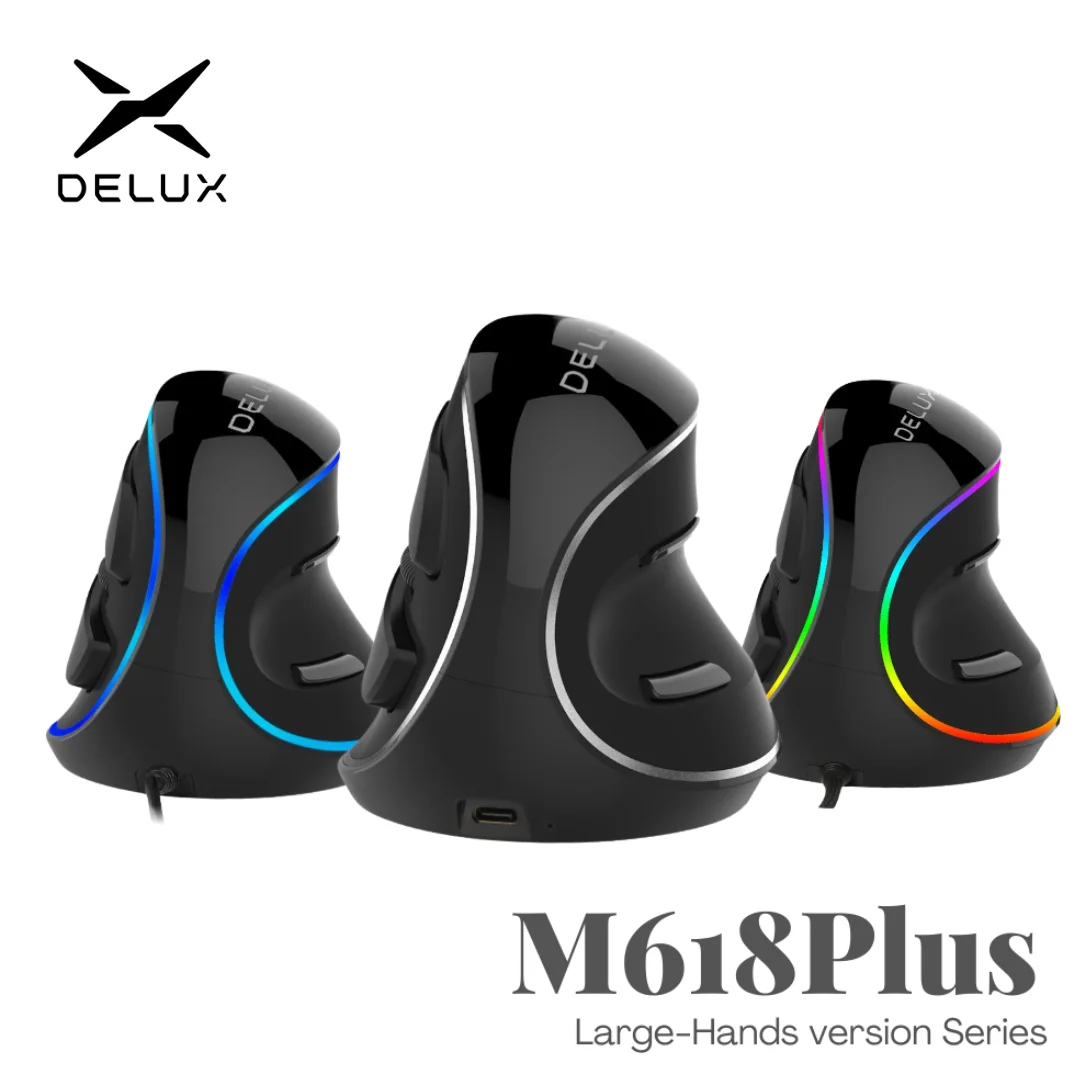 Delux M618 PLUS Ergonomía Vertical Gaming Mouse con cable 6 botones 4000 DPI Óptico RGB Ratones inalámbricos para mano derecha para PC portátil