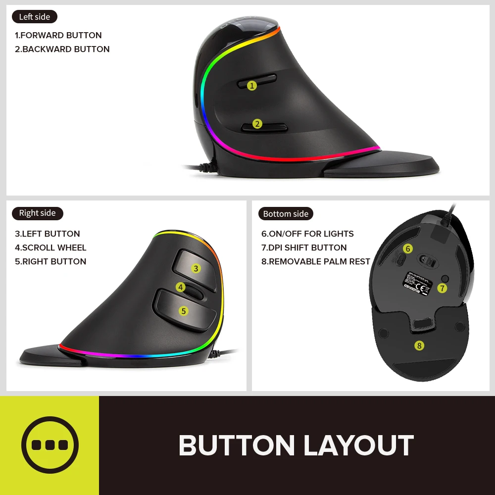 El diseño vertical ergonómico ayuda a reducir la presión y el dolor causados por el uso de un mouse tradicional.Es posible que tarde unos días acostumbrarse a usarlo.La muñequera es extraíble para mayor comodidad.