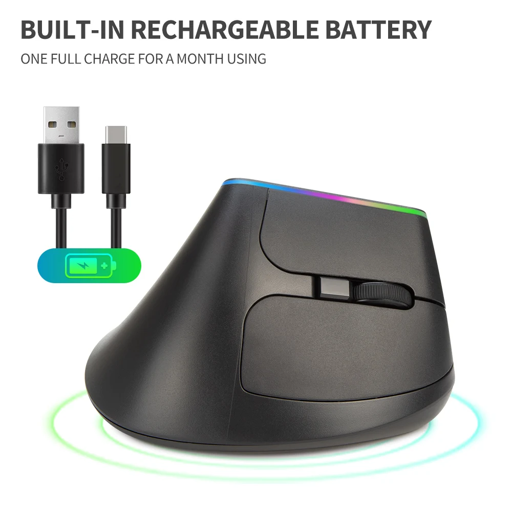 Comprar Ratón Vertical ergonómico Delux M618DB, ratón inalámbrico recargable para juegos de 2,4 GHz, ratón Vertical RGB de 1600 DPI para PC y portátil