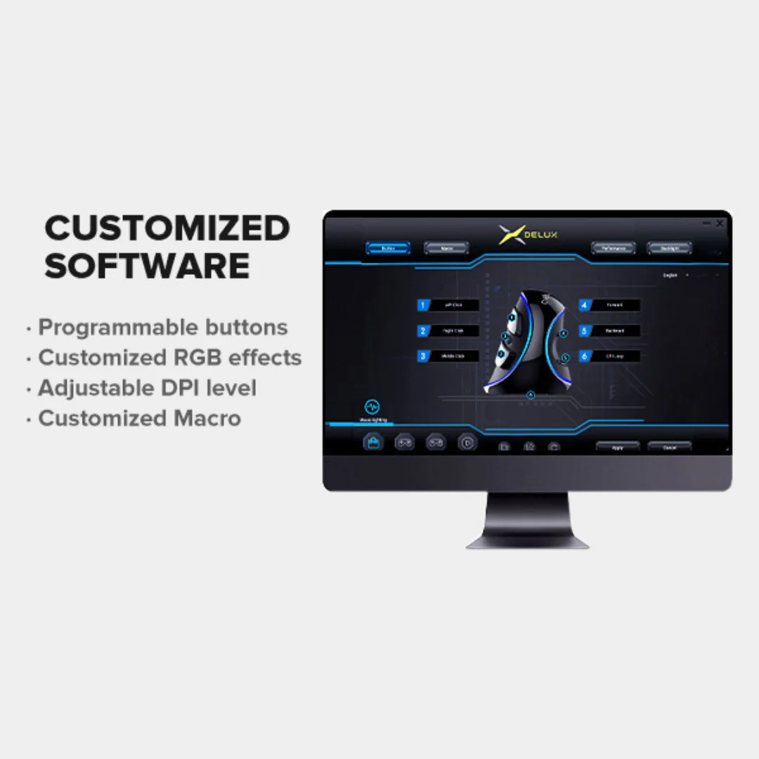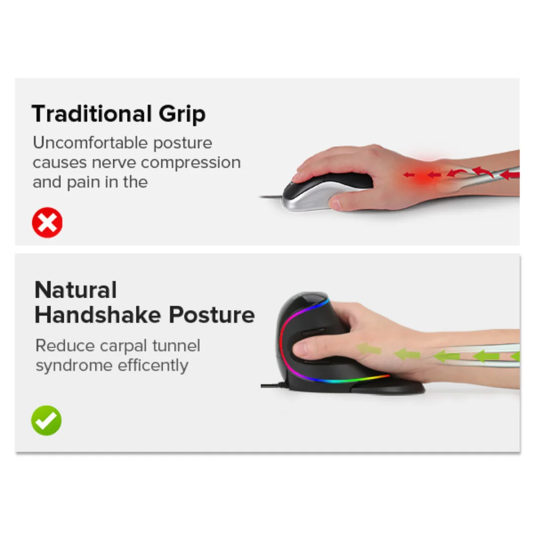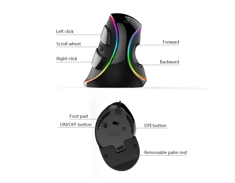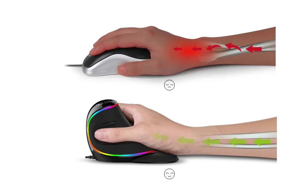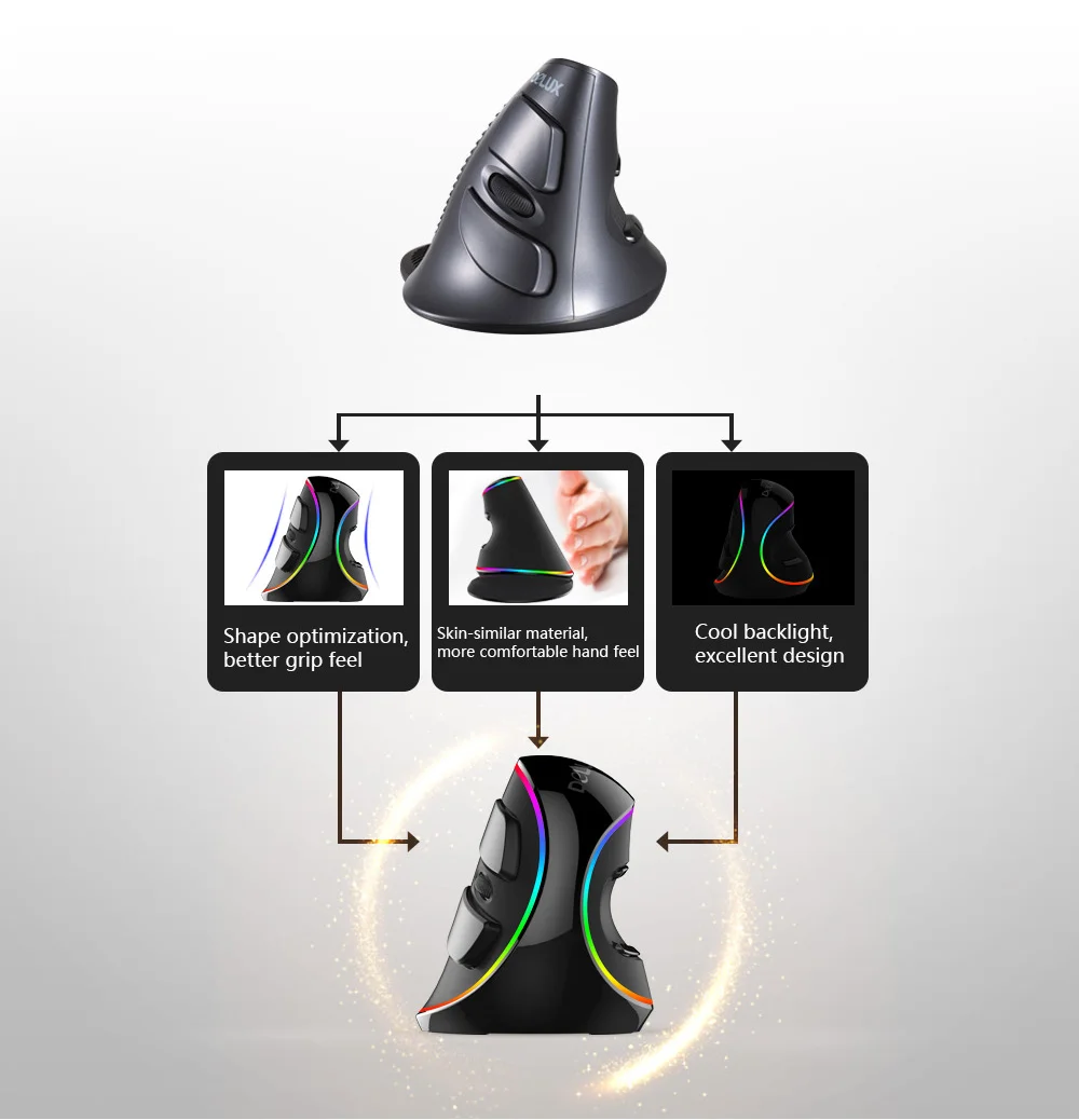 Delux M618 Plus RGB is our special product vertical mouse of 5th generation. It apopted ergonomic design, which can alleviate the arm discomfort and stiff feeling, let you say goodbye to "mouse hand".