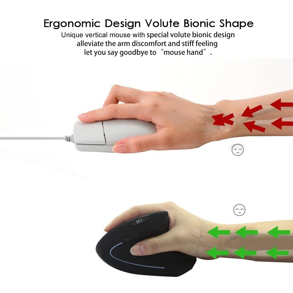 Ratón inalámbrico Vertical ratón ergonómico Bluetooth óptico 1600 DPI ratón para juegos PC ordenador portátil tableta ordenador de escritorio