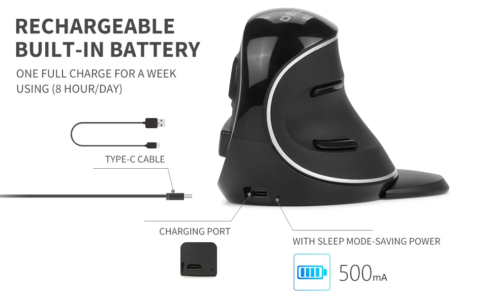 Ratón vertical ergonómico DELUX M618PD
