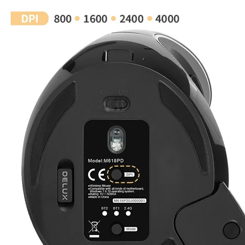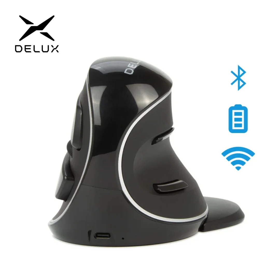 Comprar Ratón Vertical ergonómico inalámbrico DELUX M618PD Bluetooth + 2,4 Ghz 4000DPI recargable 6 botones ratones para PC portátil