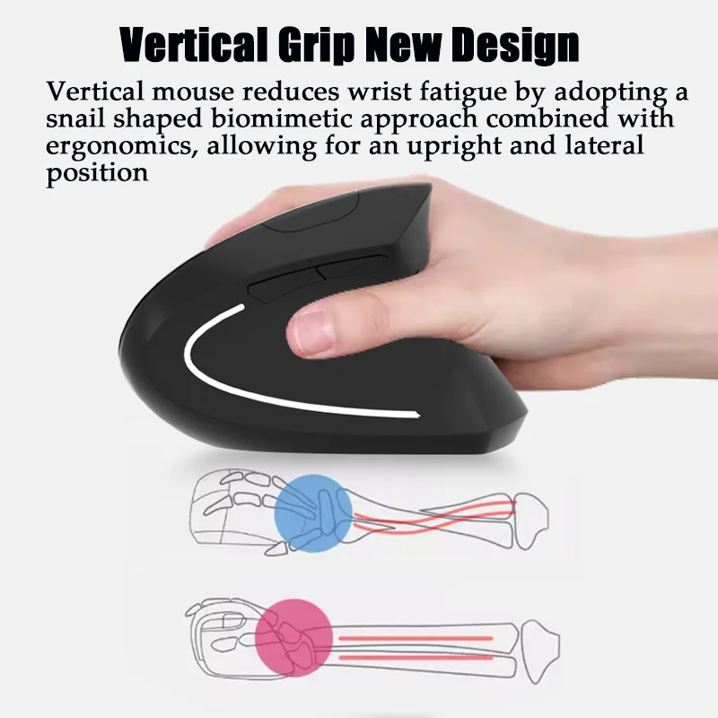 Comprar Ratón Vertical inalámbrico 2,4G, diseño ergonómico, 1600 DPI, ajustable, antideslizante, batería Plug And Play, PC, portátil, uso en oficina y negocios