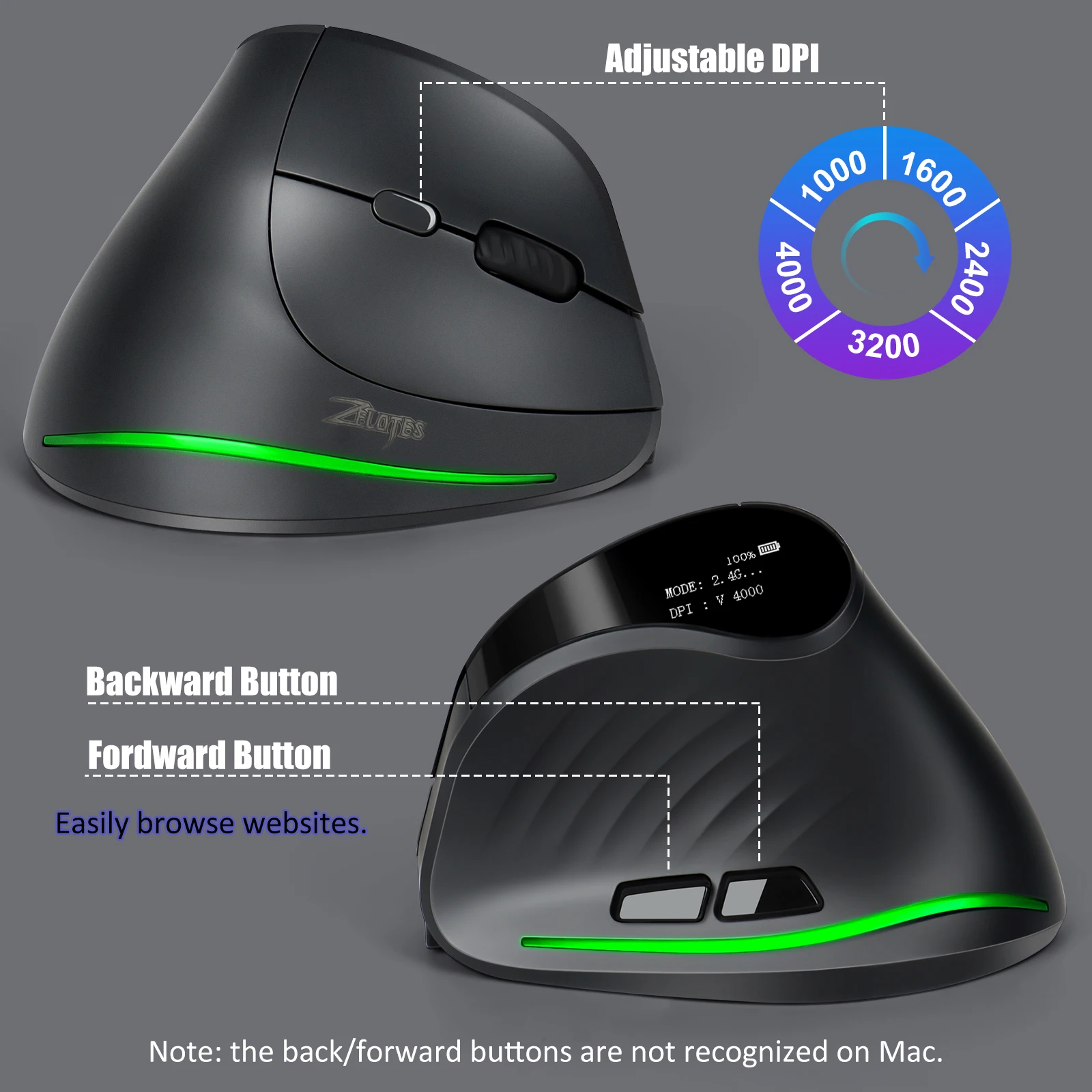 Comprar Ratón Vertical inalámbrico Lefon F35C, ratón ergonómico con Bluetooth, 4000DPI, 7 botones con ratón para juegos programable OLED para PC y portátil