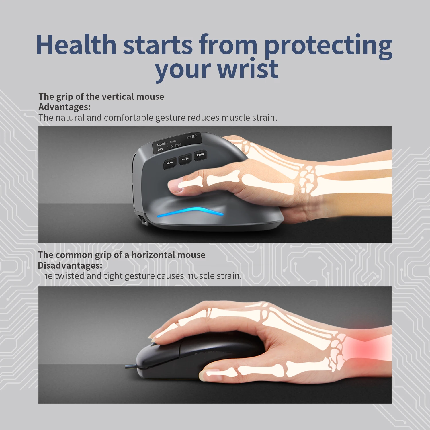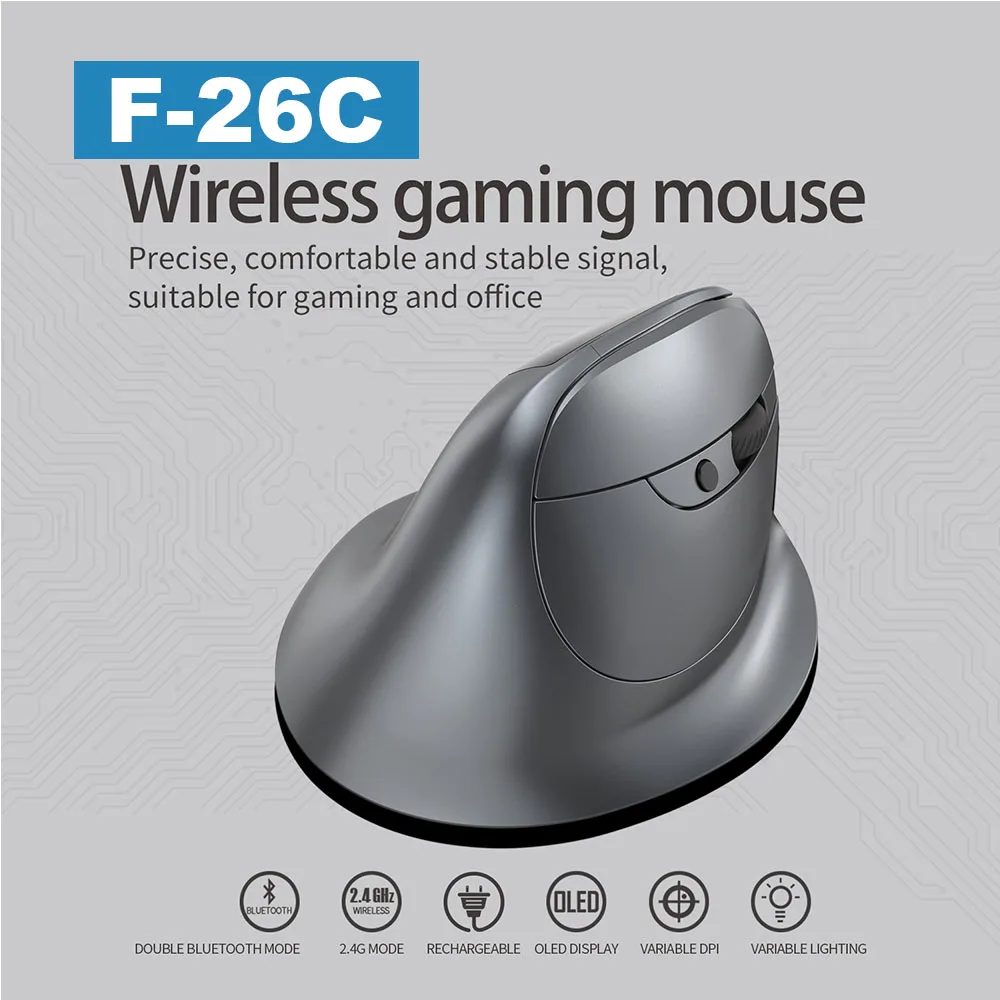 ZELOTES F-26C ratón Vertical recargable Bluetooth ratón 2,4G inalámbrico para juegos pantalla LED de 3200DPI para PC portátil