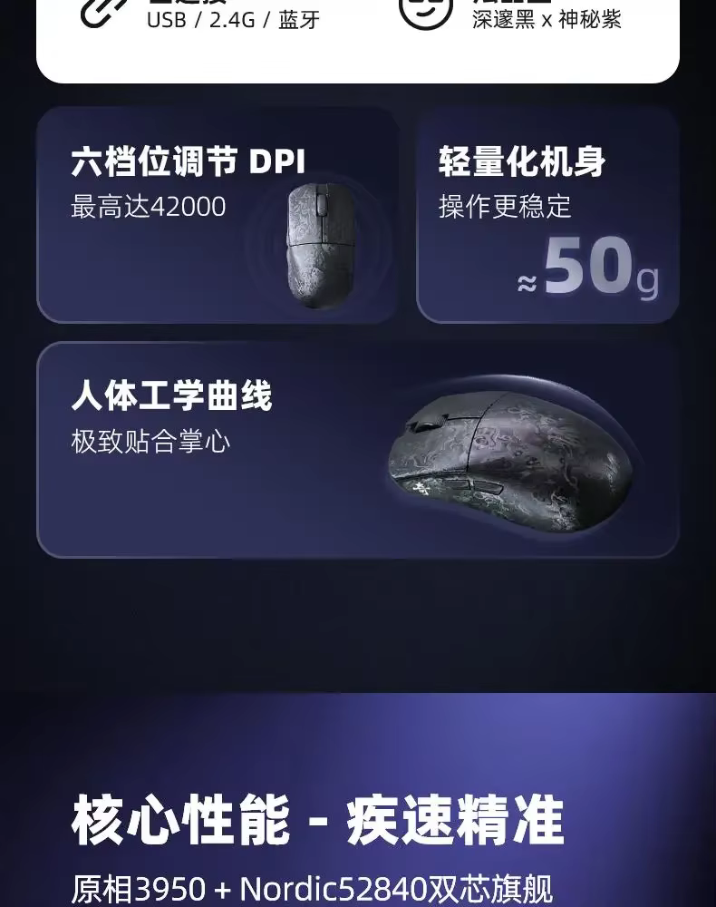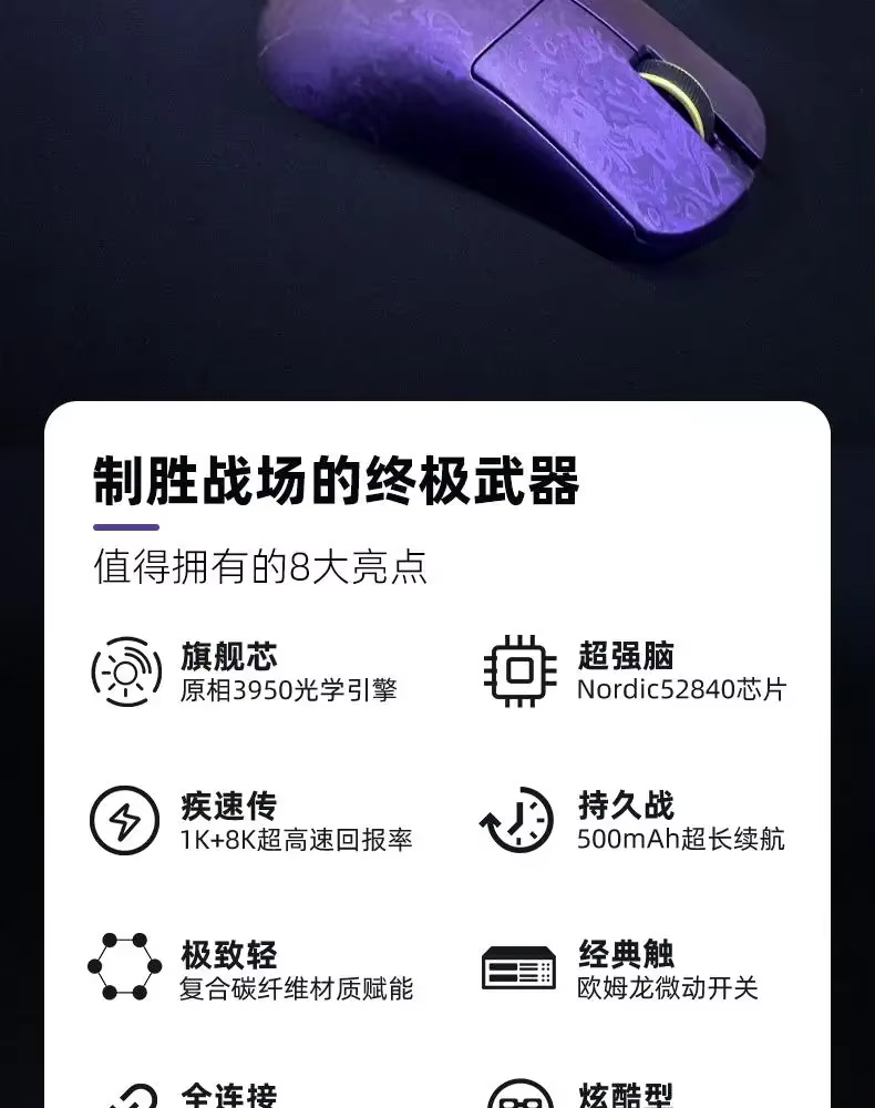 Ratón para videojuegos IPI Qi Pro, fibra de carbono, 3 modos, 2,4G, Nordic52840 Paw3950, traje de ratón ligero para Fps, ratón deportivo electrónico personalizado