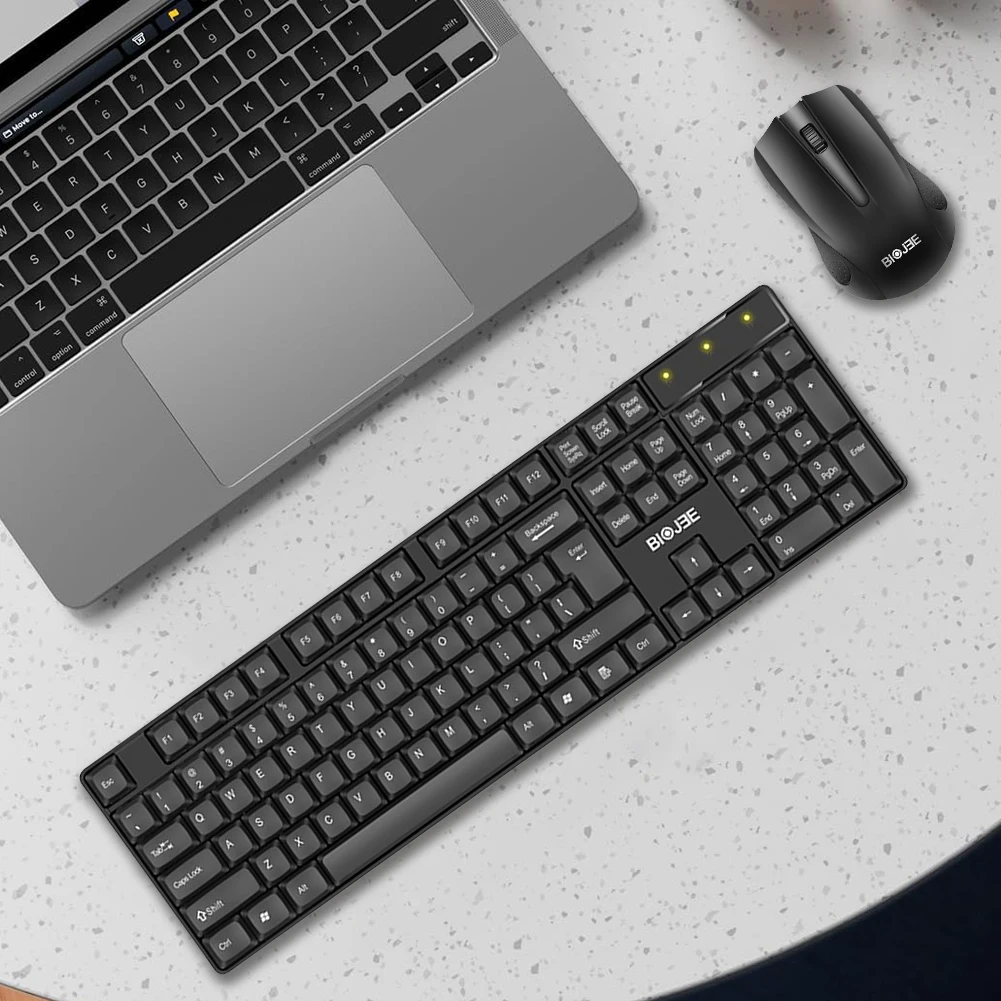 2.Conectividad de largo alcance:Disfrute de hasta 10 metros de conexión inalámbrica con el mouse y el teclado silenciosos de tamaño completo.La configuración plug-and-play utiliza un nanocreceptor unificado, con el mouse que ofrece hasta 1200 DPI para un control preciso.