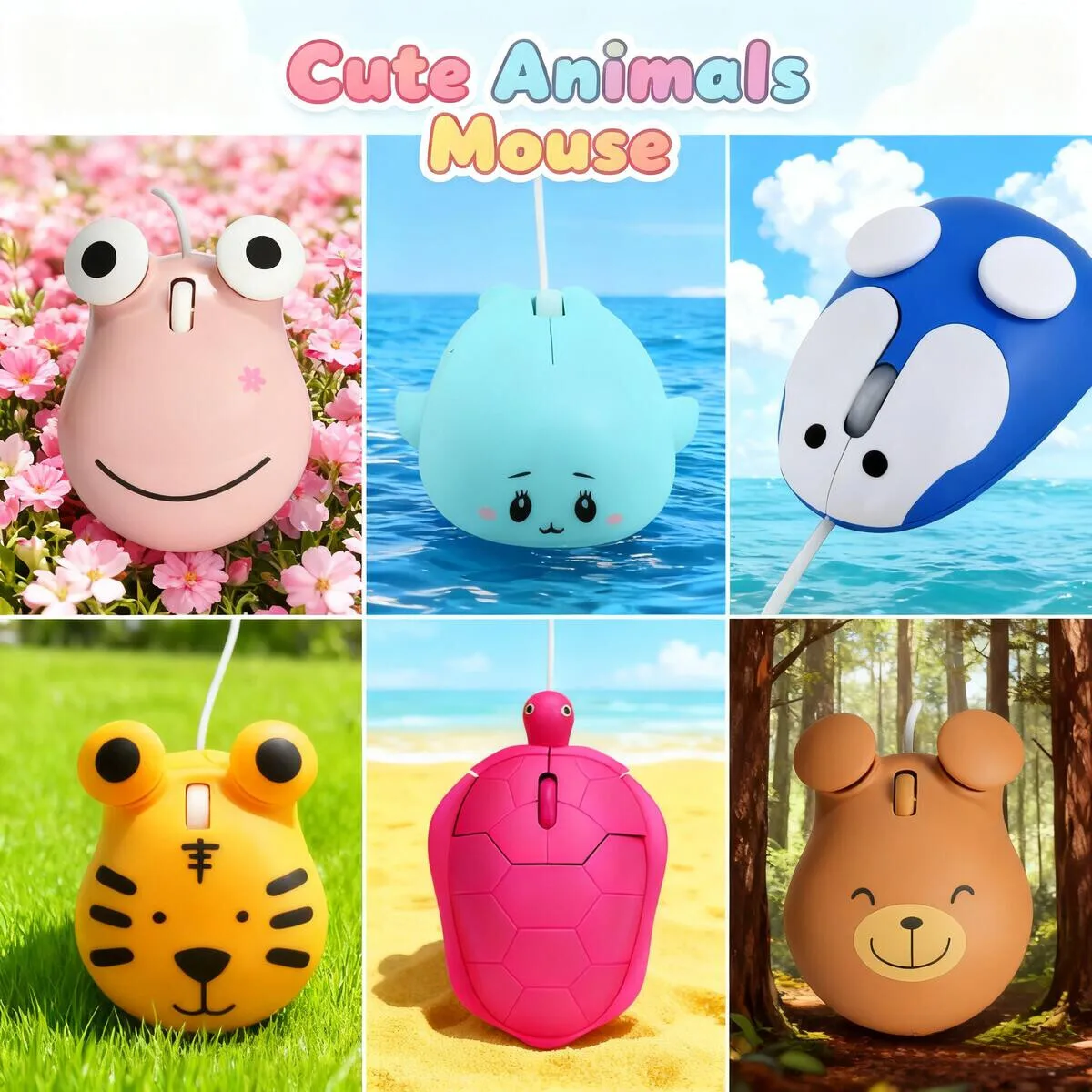 Ratón con cable USB estilo animales de dibujos animados Kawaii, ergonomía, alta compatibilidad, Plug-and-play, Mute Mause para escritorio, regalos para portátiles