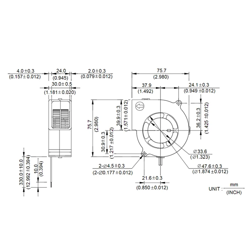 Interfaz del ventilador: interfaz de 2 cables (como se muestra en la figura), longitud del cable 6 CM