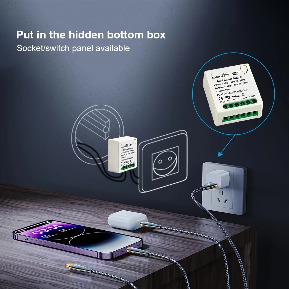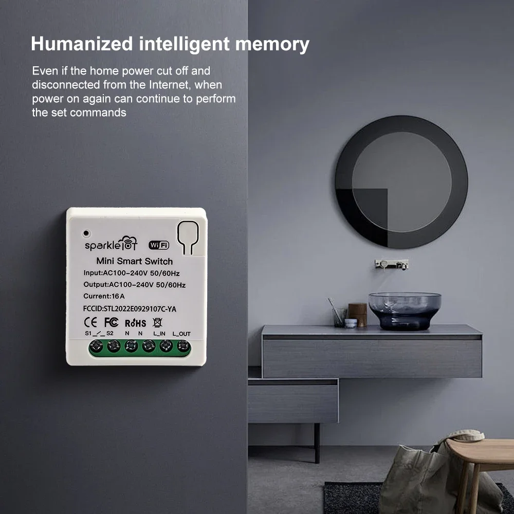 Matter 16A WiFi mini Smart Switch Pass-through Disconnect Smart Home Automation Relay Module Dual Control Outletorks Work With Apple HomeKit Alexa Google