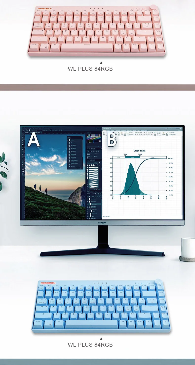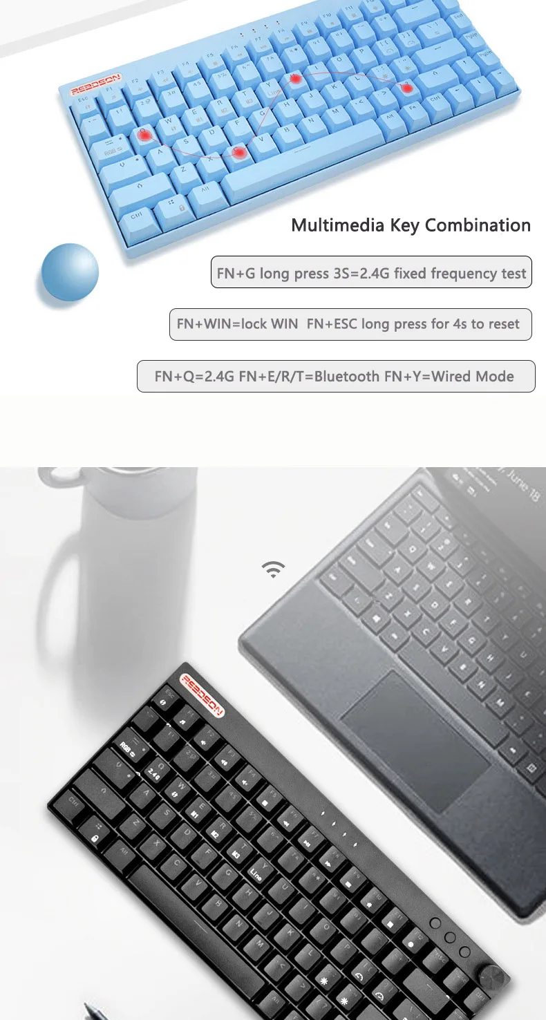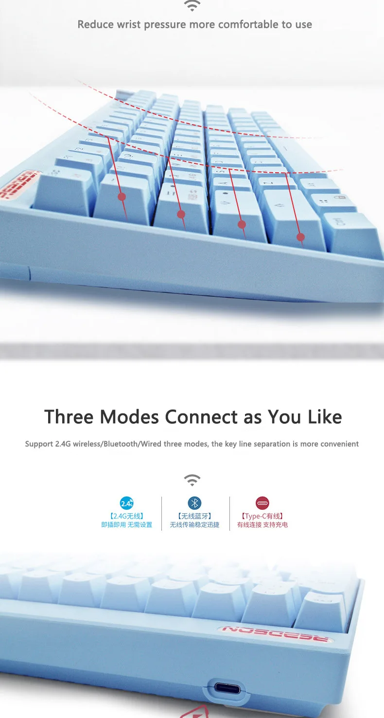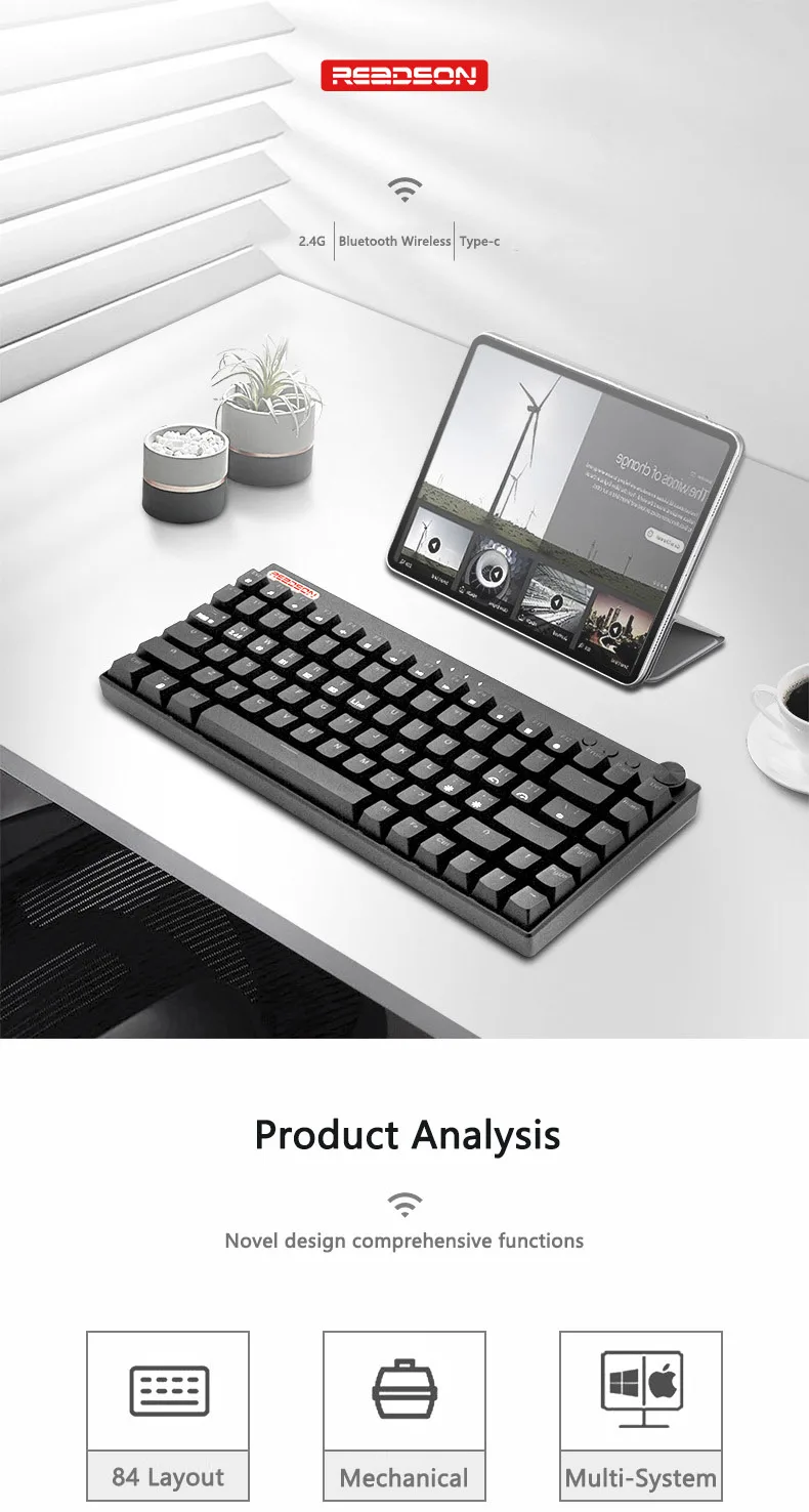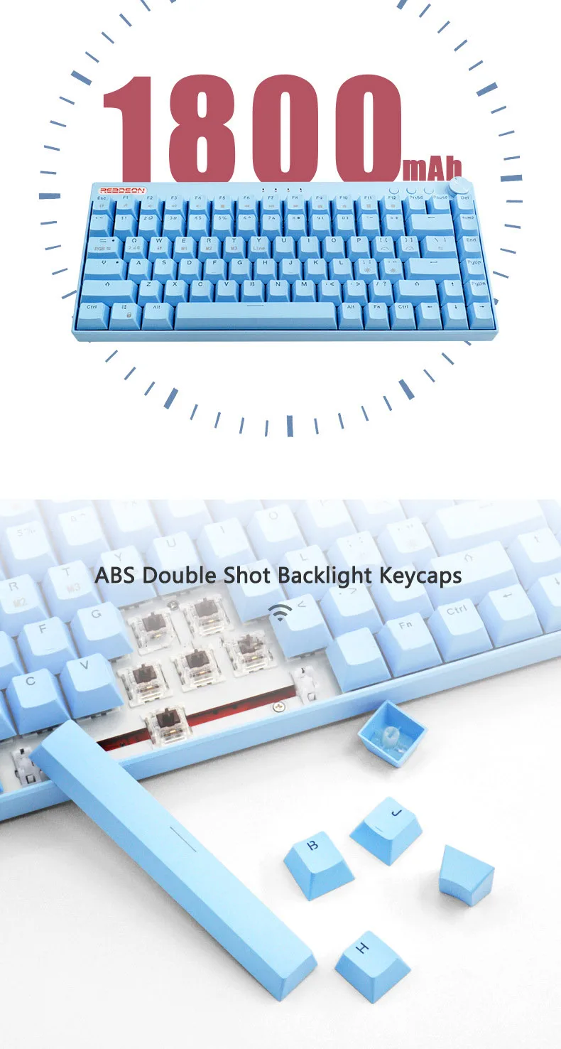 Comprar Readson Plus-Teclado mecánico inalámbrico para videojuegos, dispositivo de 84 teclas con Bluetooth, trimodo, 2,4G, batería de 1800mAh, interruptores MX Outemu