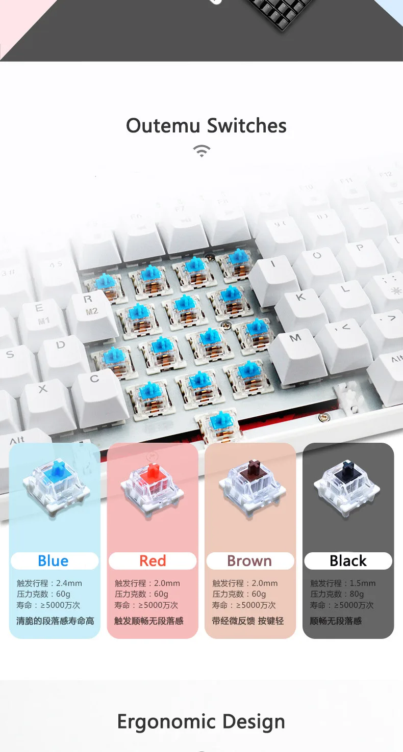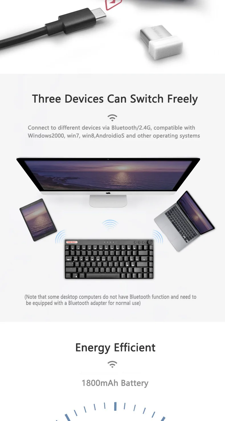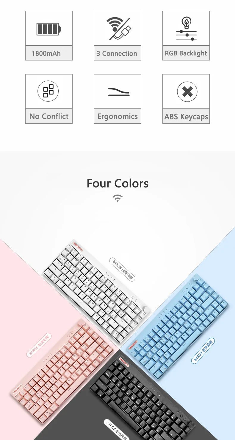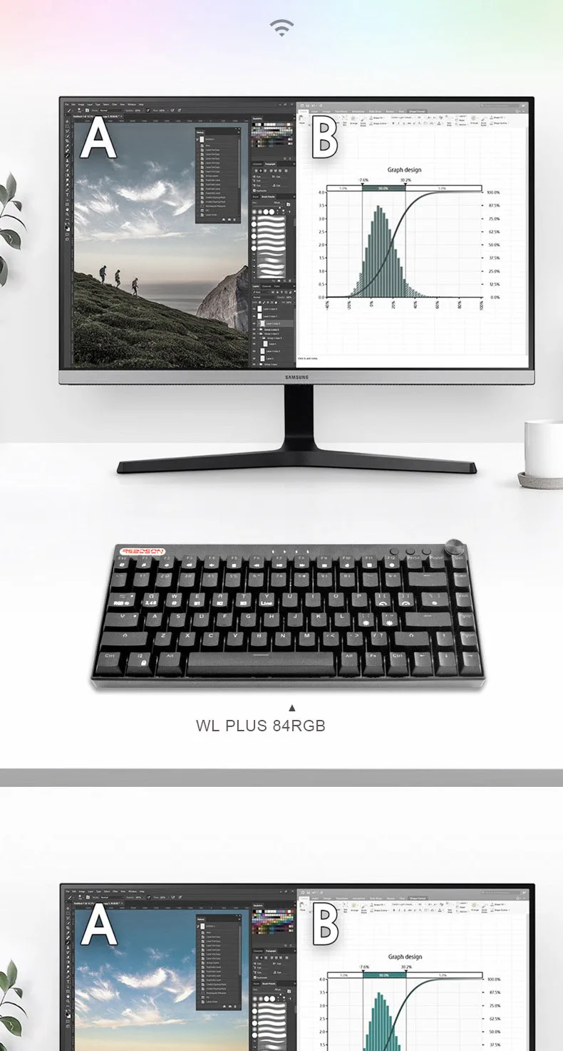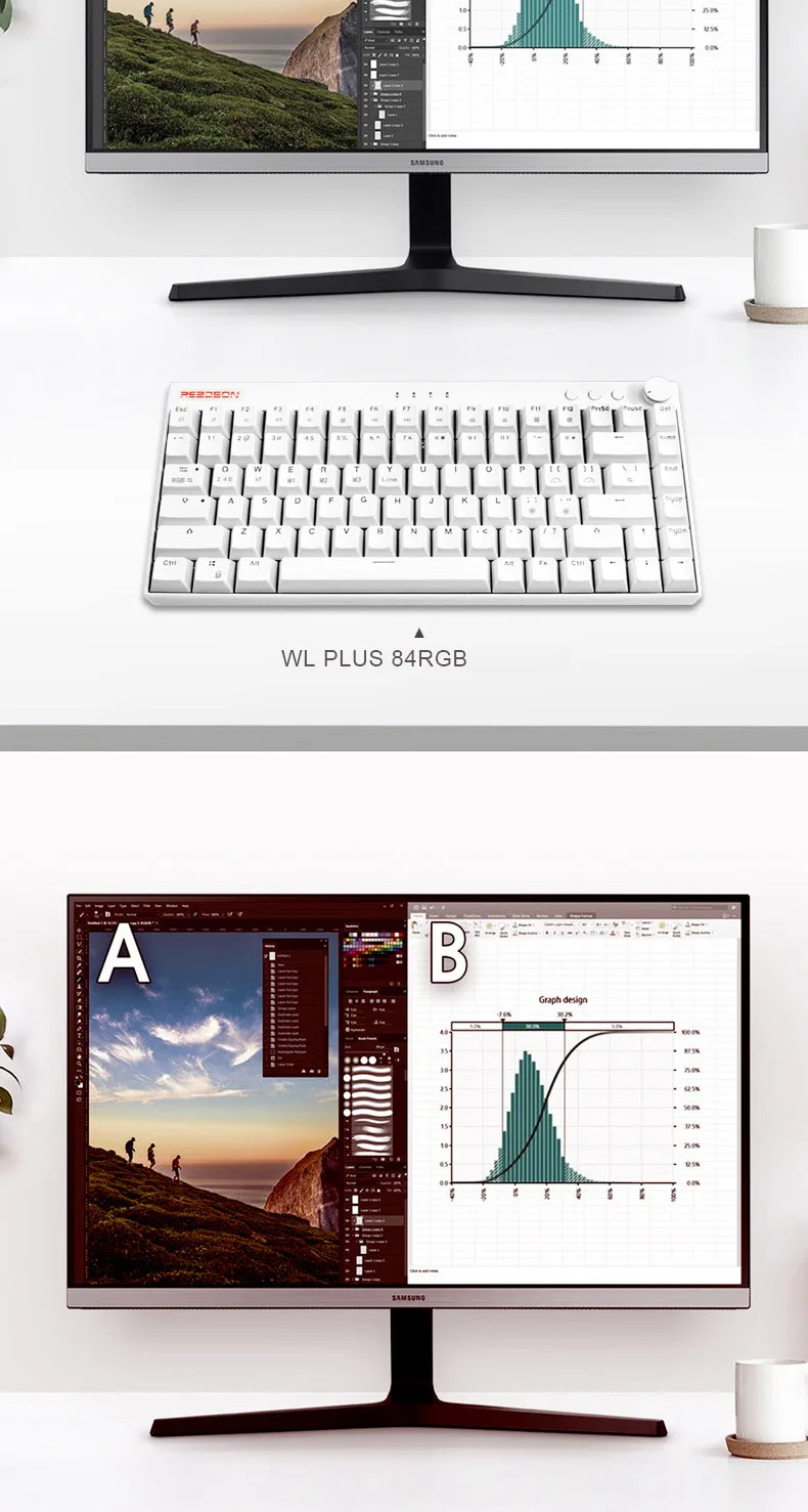Comprar Readson Plus-Teclado mecánico inalámbrico para videojuegos, dispositivo de 84 teclas con Bluetooth, trimodo, 2,4G, batería de 1800mAh, interruptores MX Outemu