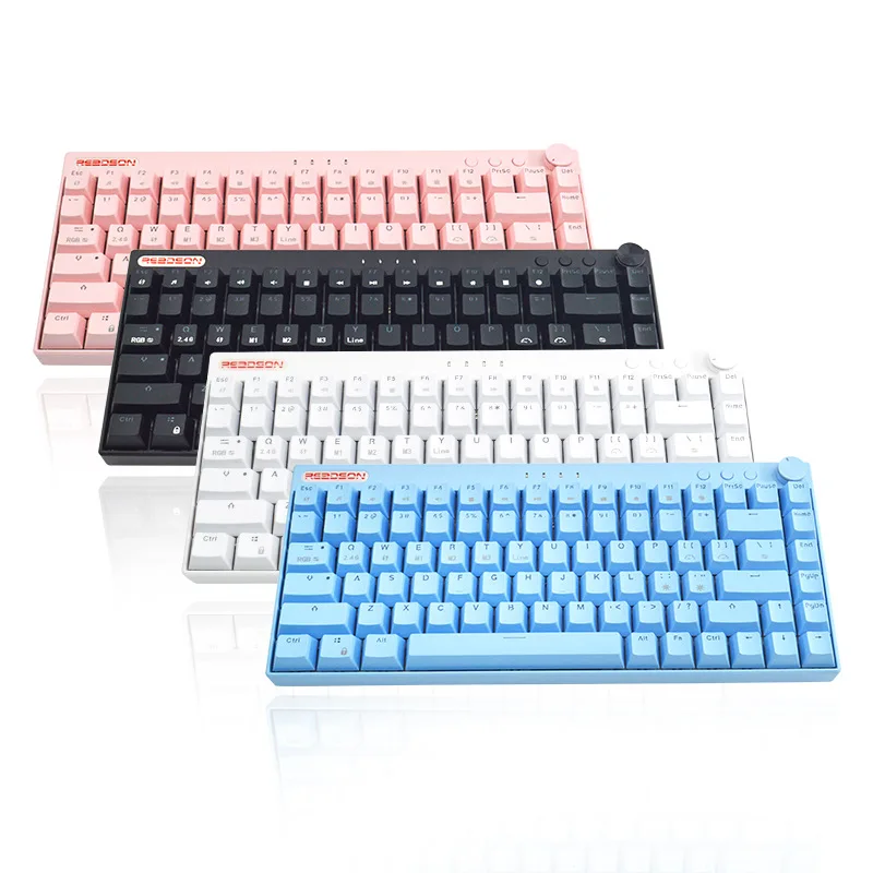 Comprar Readson Plus-Teclado mecánico inalámbrico para videojuegos, dispositivo de 84 teclas con Bluetooth, trimodo, 2,4G, batería de 1800mAh, interruptores MX Outemu