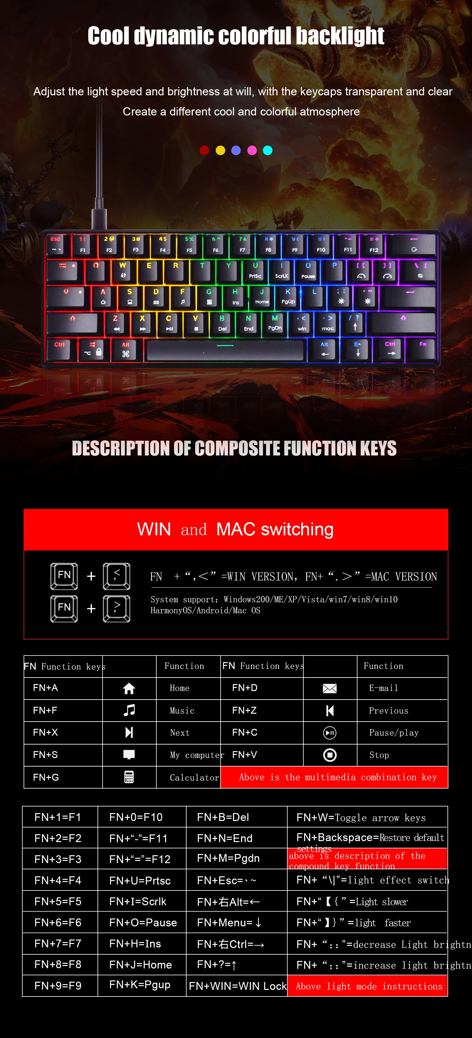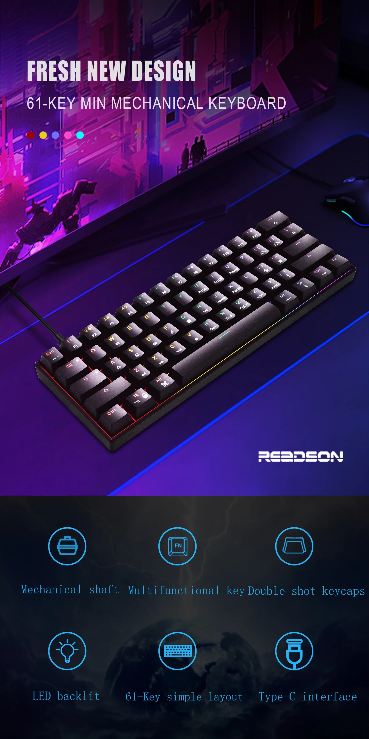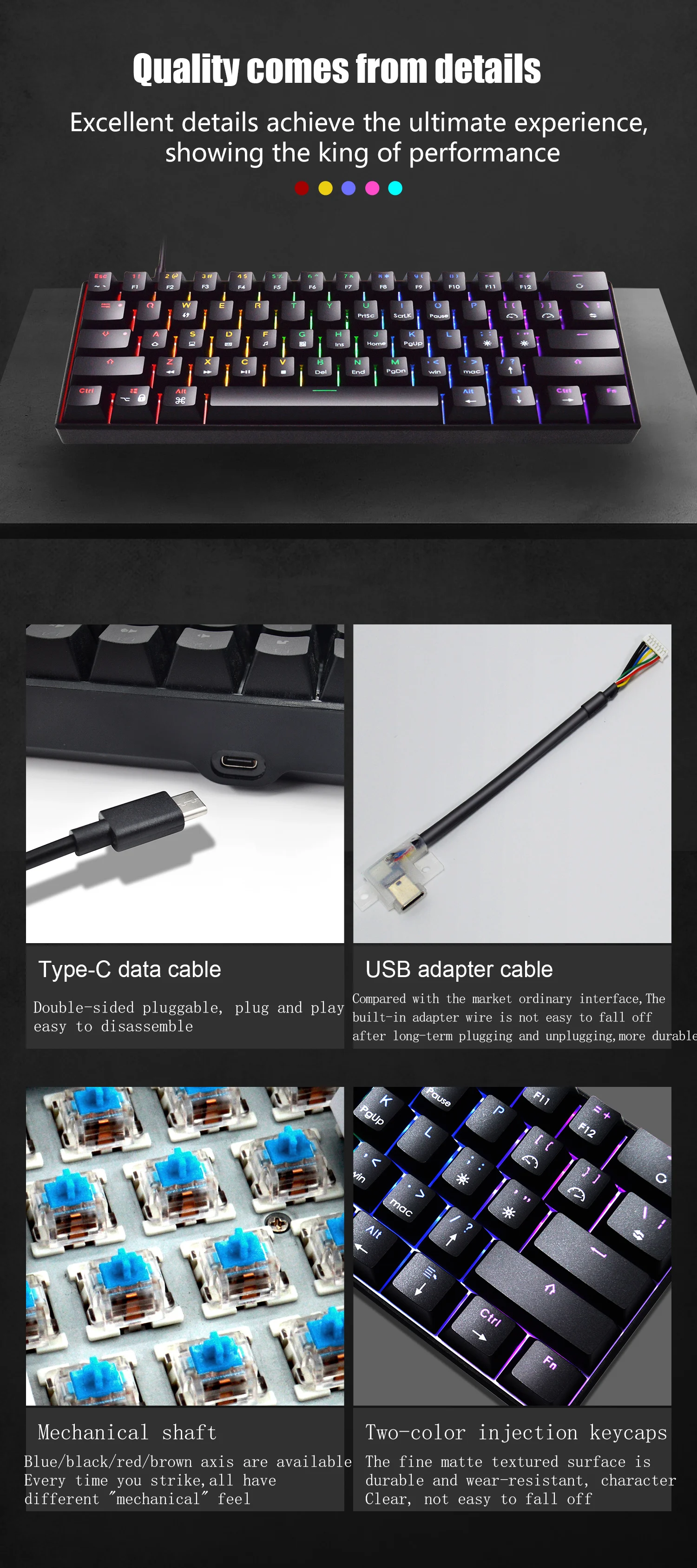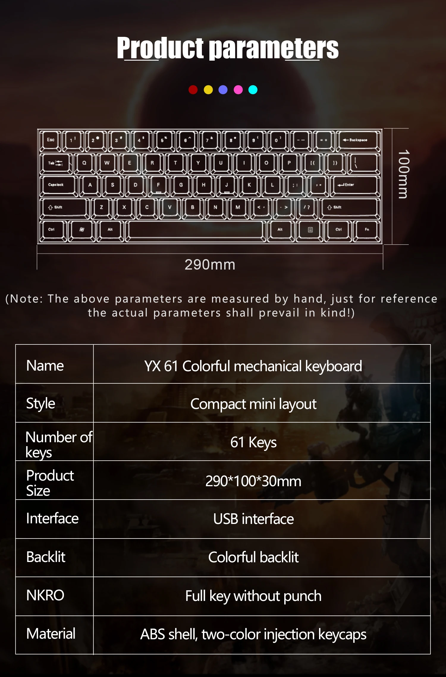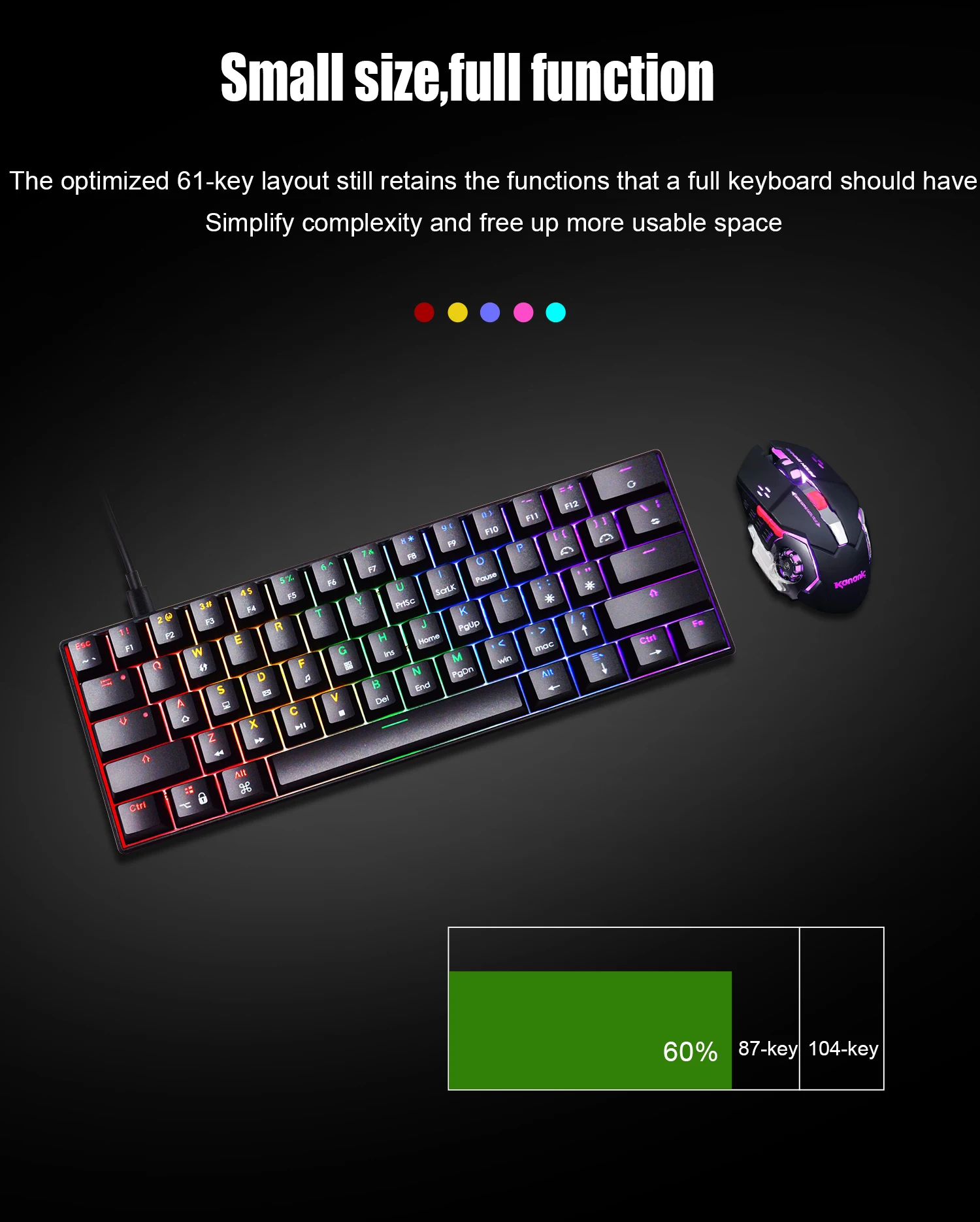 Comprar Readson-Teclado mecánico con cable USB para Gamer, Teclado mecánico con retroiluminación, interruptor Outemu, para juegos, PC y portátil, diseño 60%, YX-61
