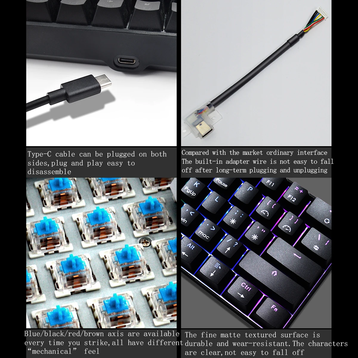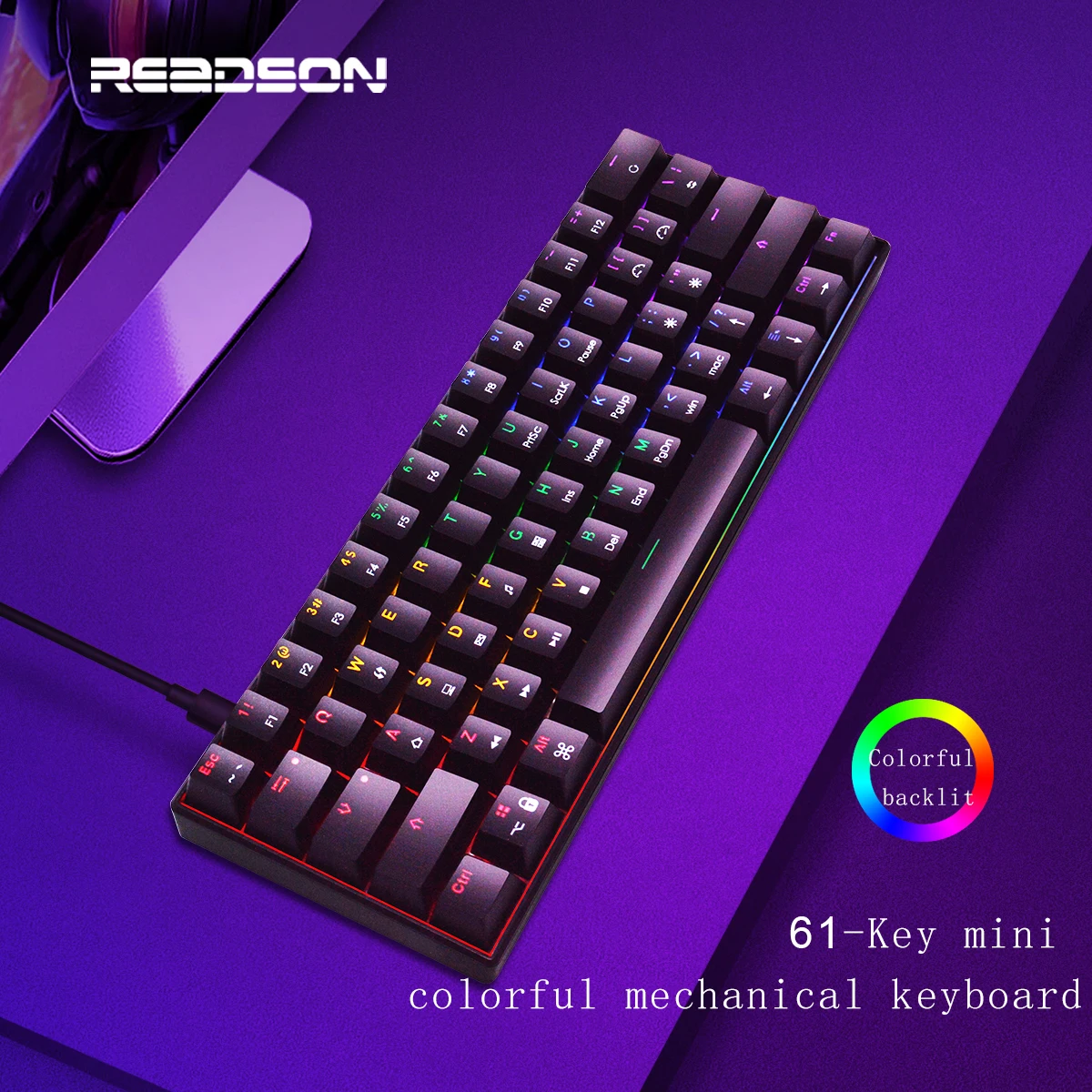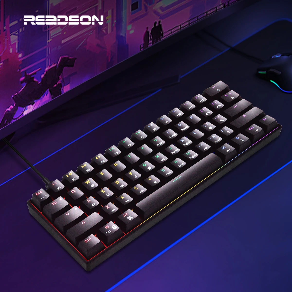 Comprar Readson-Teclado mecánico con cable USB para Gamer, Teclado mecánico con retroiluminación, interruptor Outemu, para juegos, PC y portátil, diseño 60%, YX-61