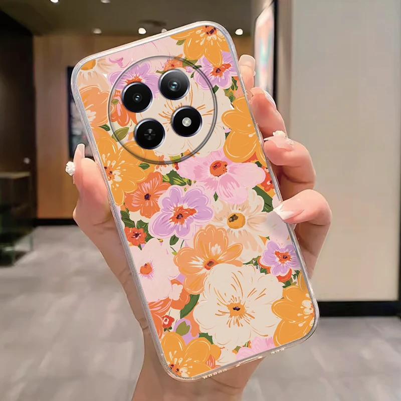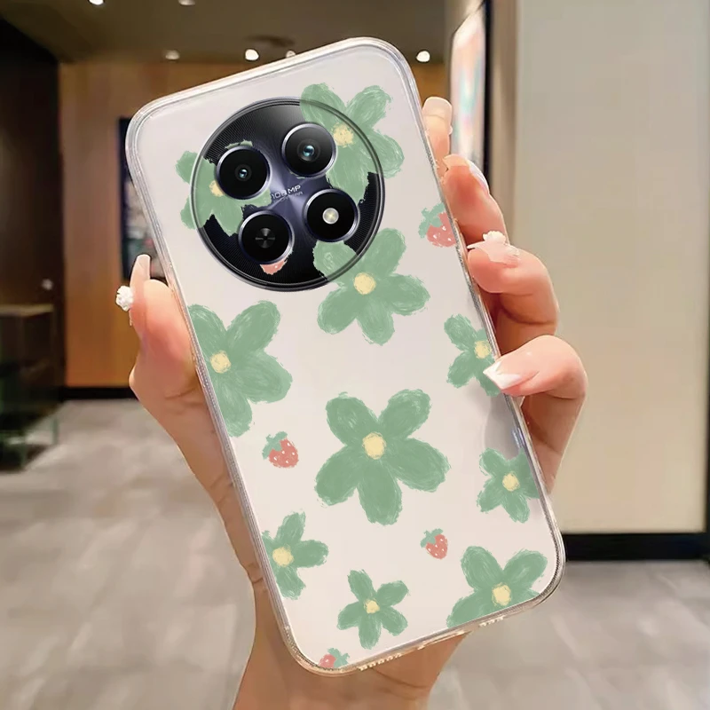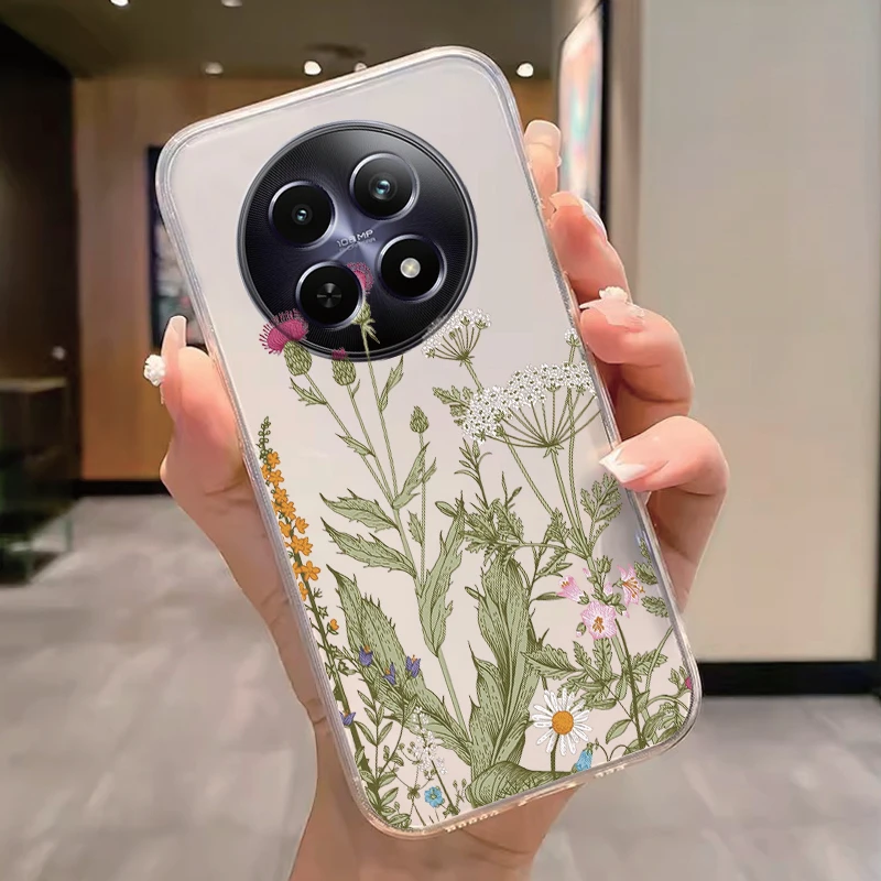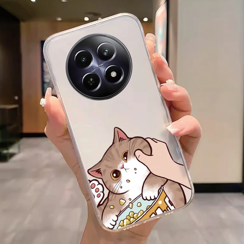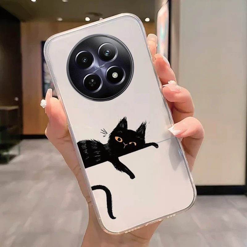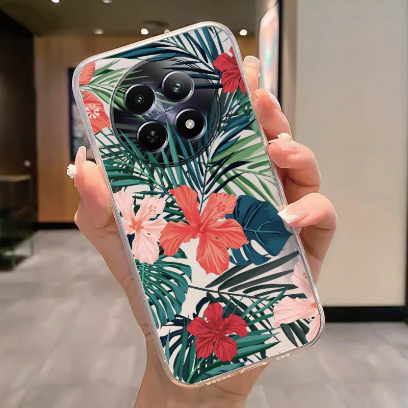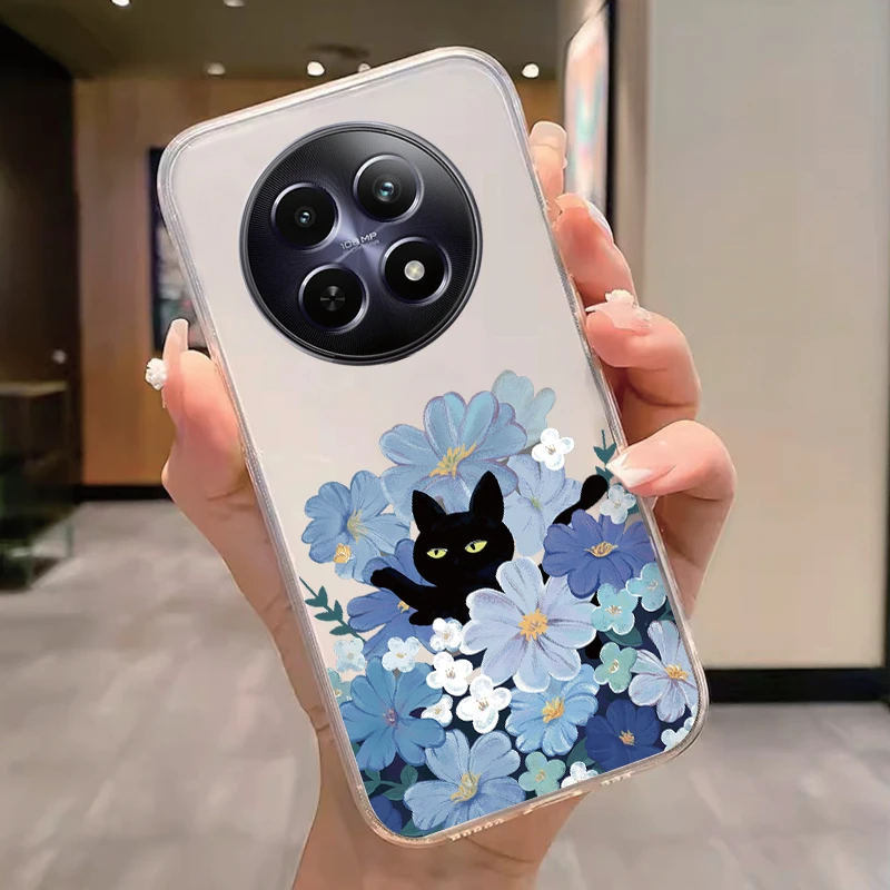 Para Realme 12 4G 12+ 13+ Plus 13 Pro+ Plus 5G funda de moda flores pintadas transparente funda de teléfono de silicona Fundas divertido gato pareja