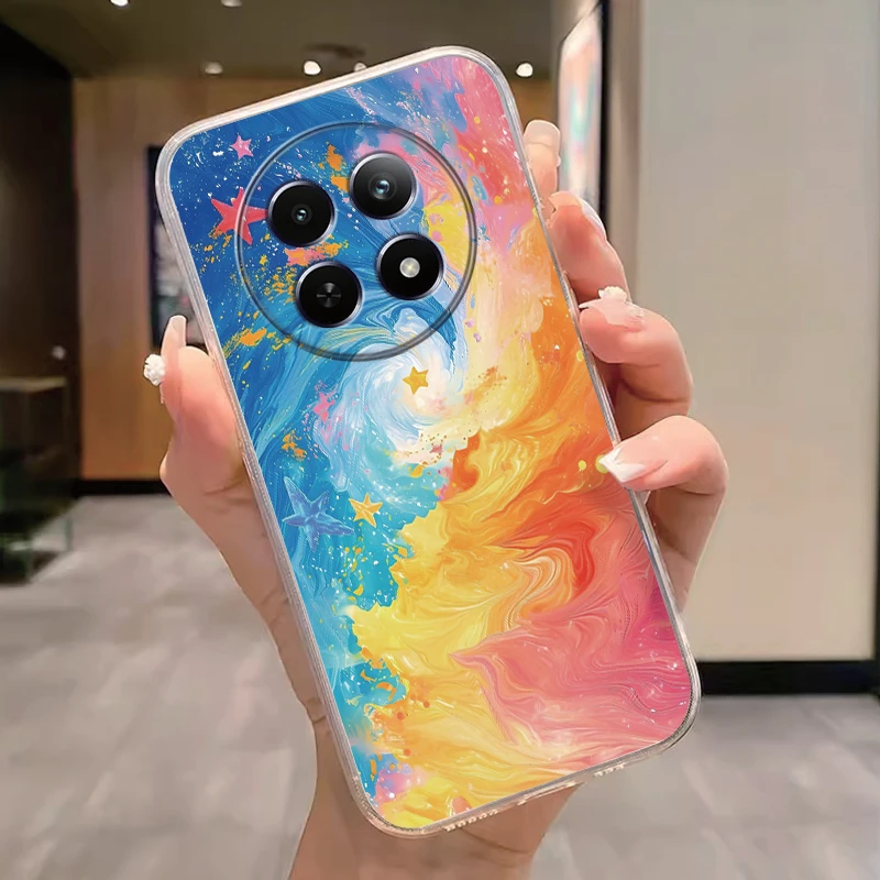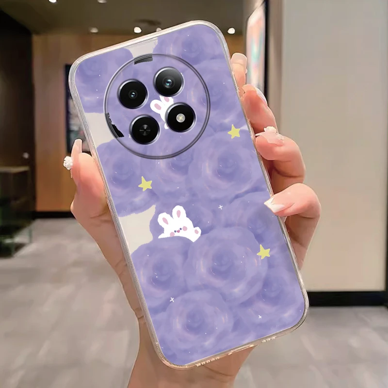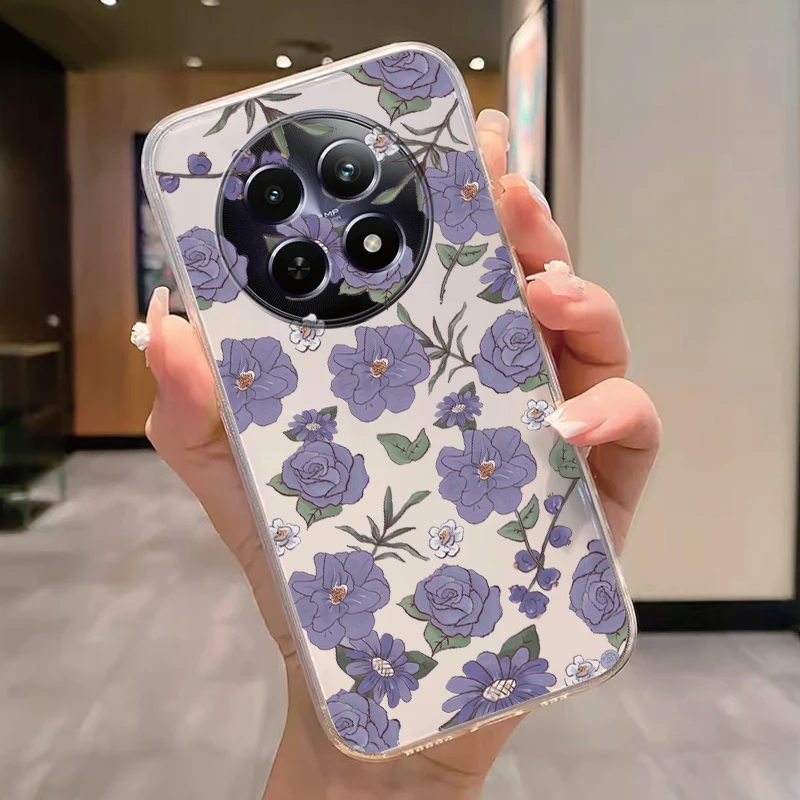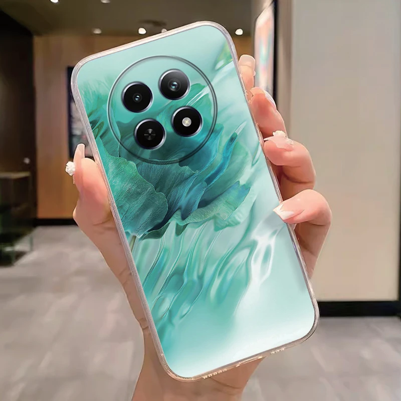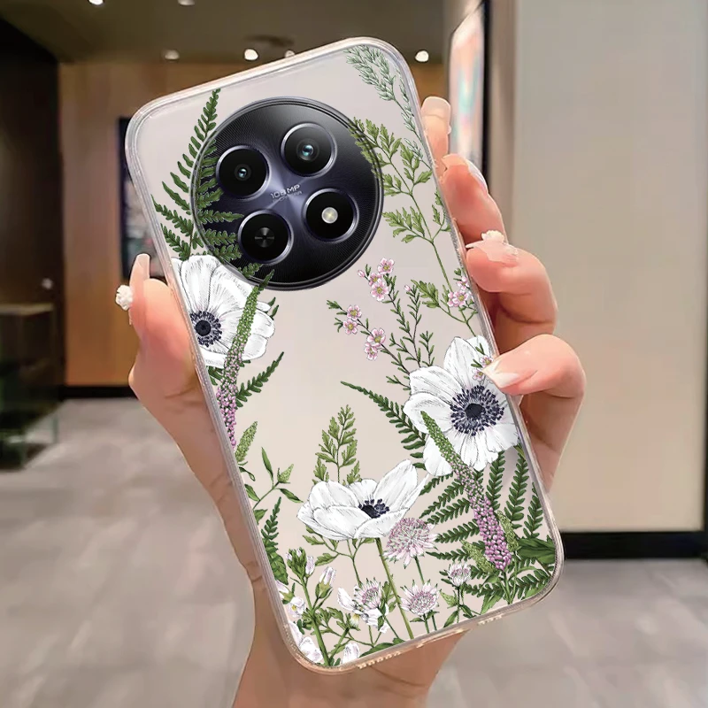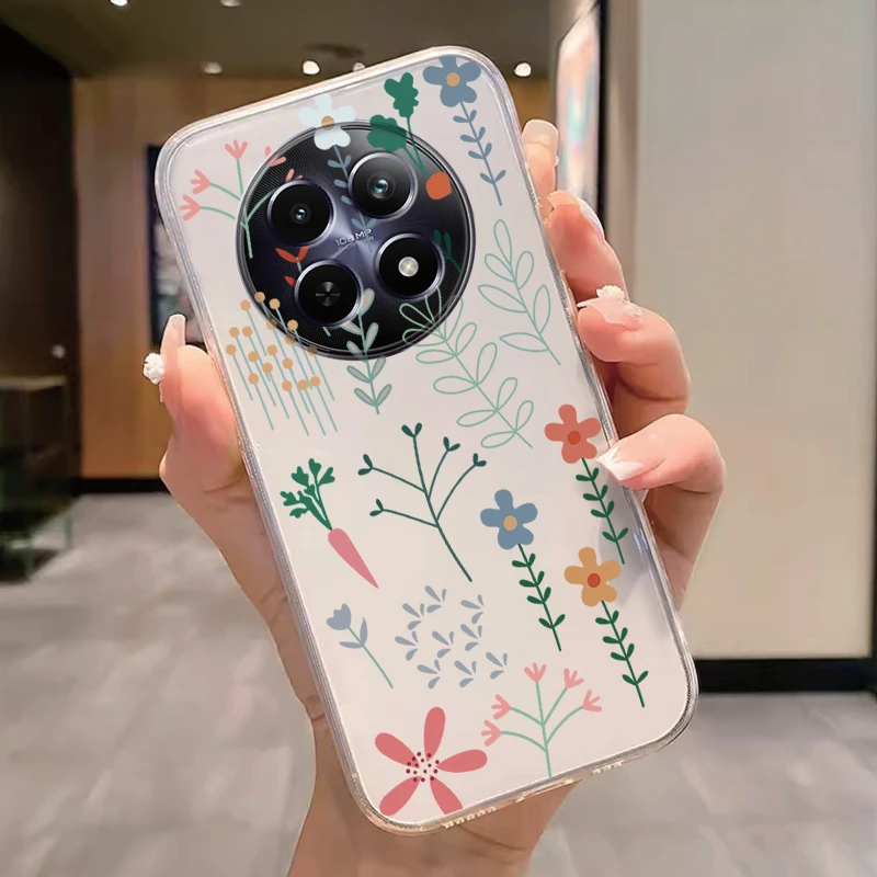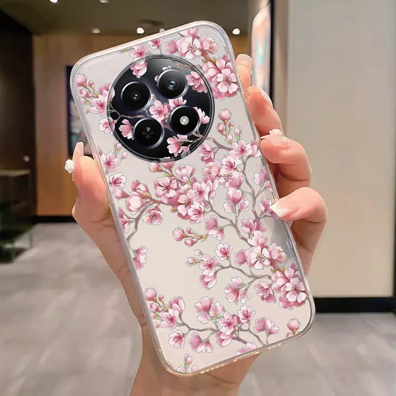 Para Realme 12 4G 12+ 13+ Plus 13 Pro+ Plus 5G funda de moda flores pintadas transparente funda de teléfono de silicona Fundas divertido gato pareja