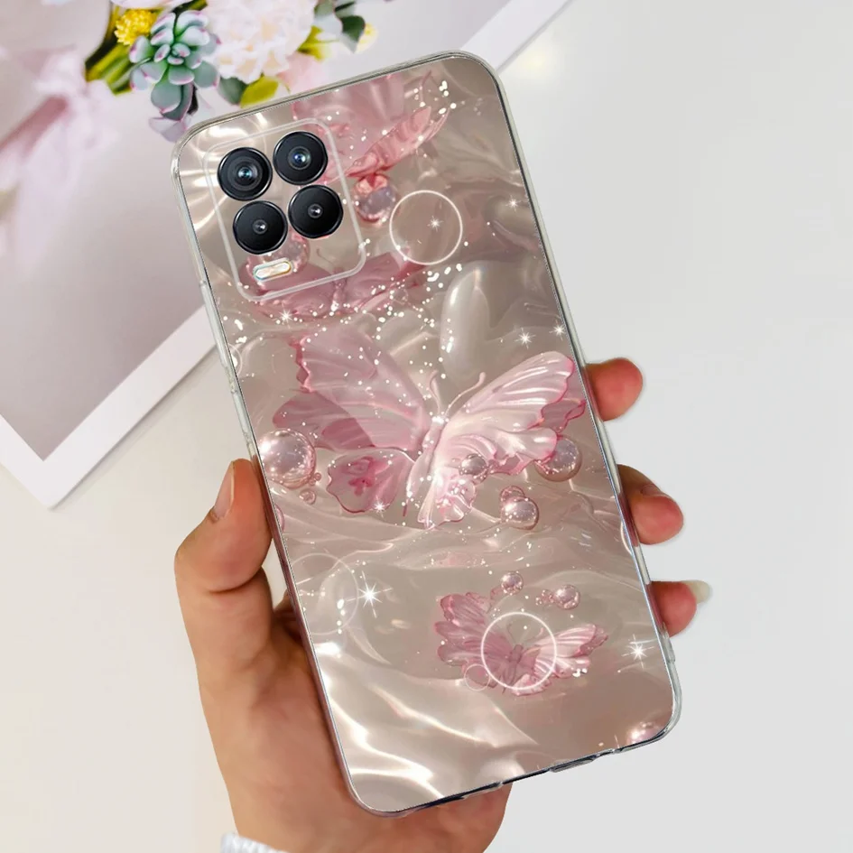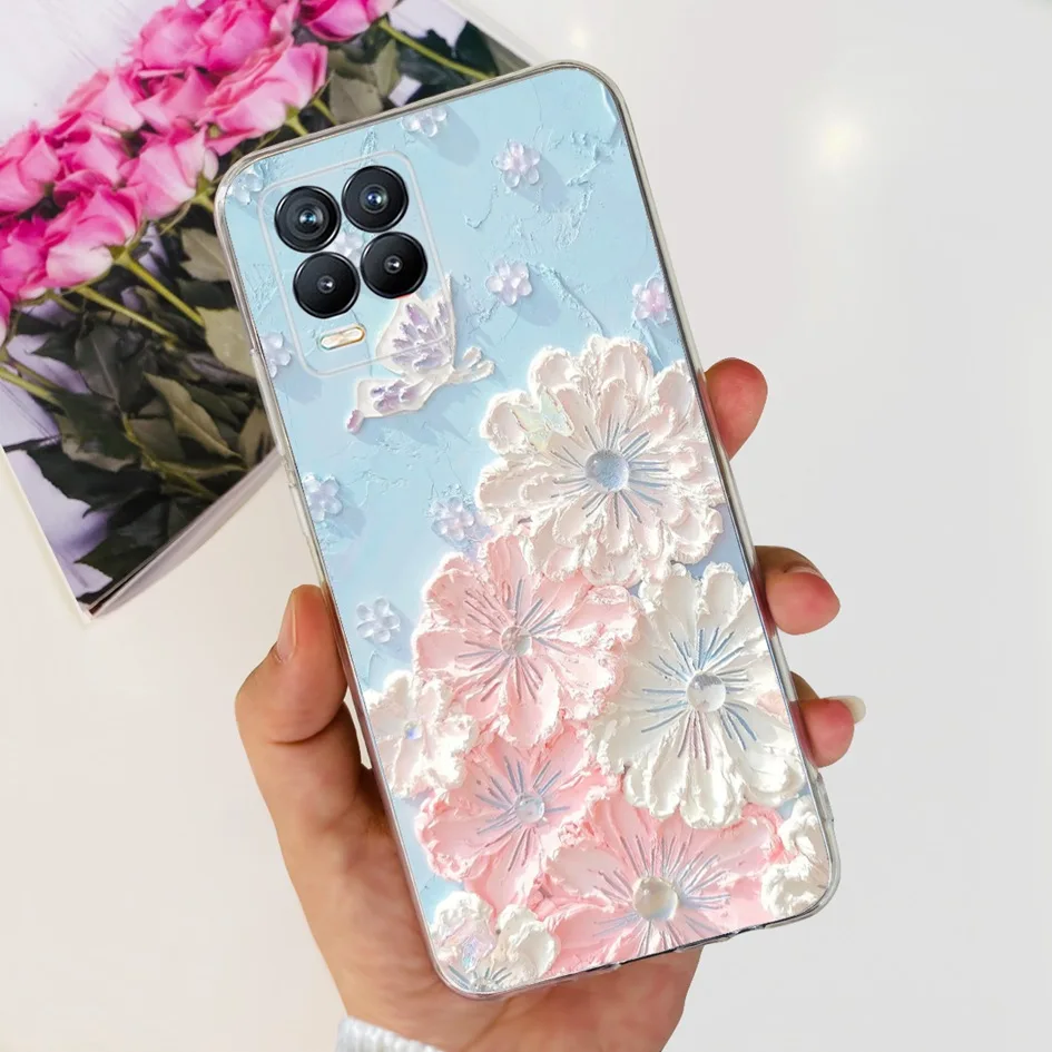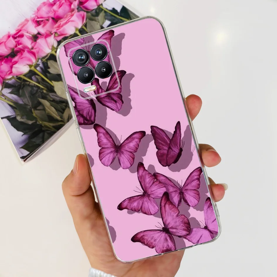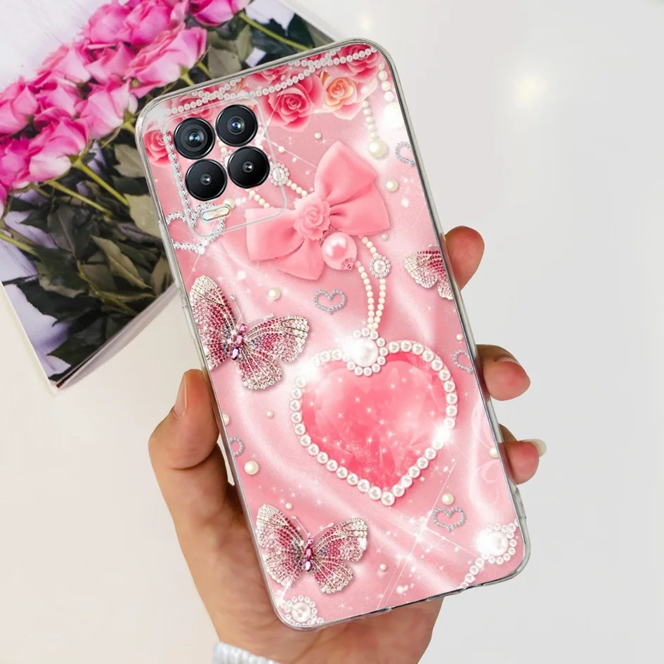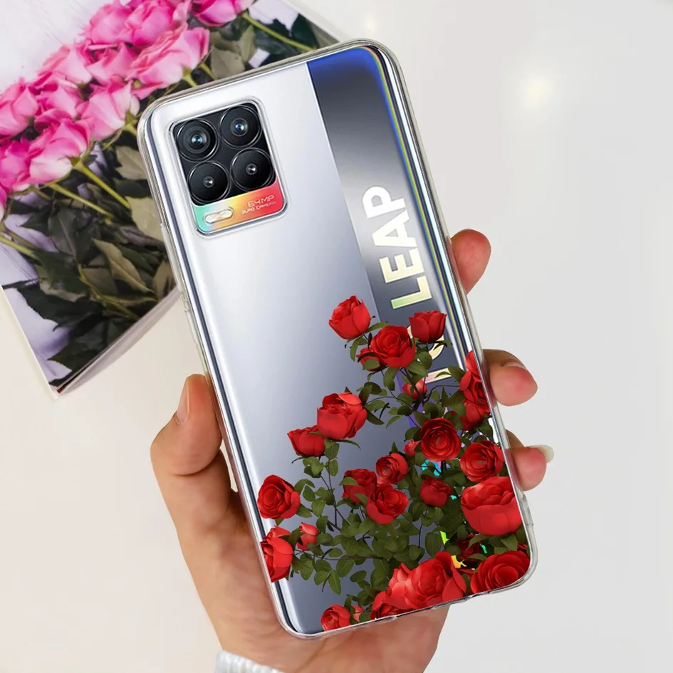 Para Realme 8 Pro funda moda flor amor corazón suave funda transparente de silicona para Realme 8 5G RMX3241 Funda en Realme8 RMX3085 Coque