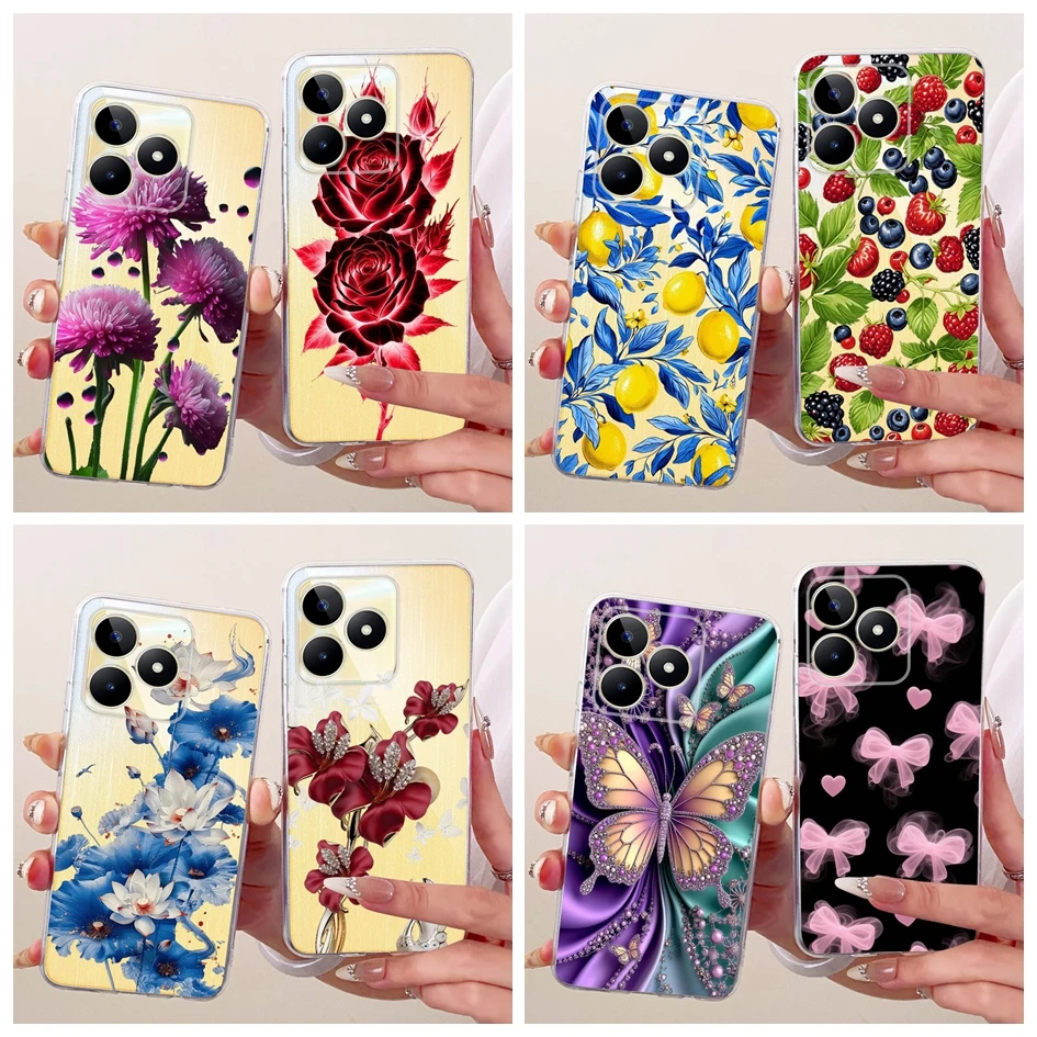 Para Realme C53 funda RMX3760 funda de moda flor transparente silicona suave TPU funda de teléfono para Realme Note 50 C51s C60 parachoques
