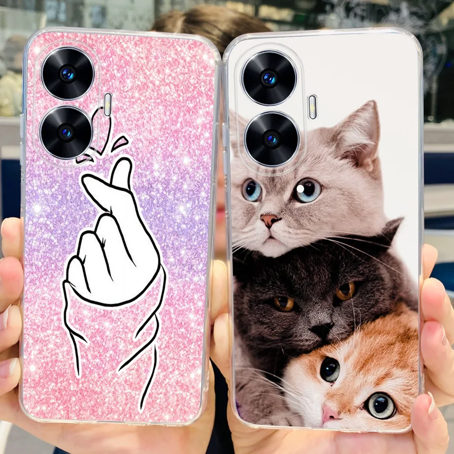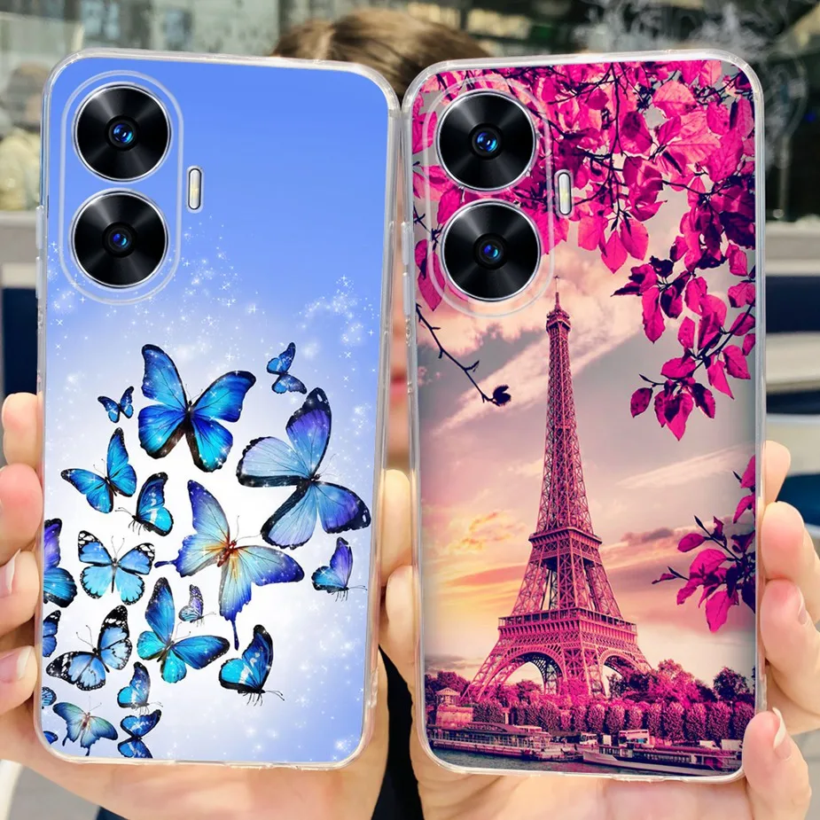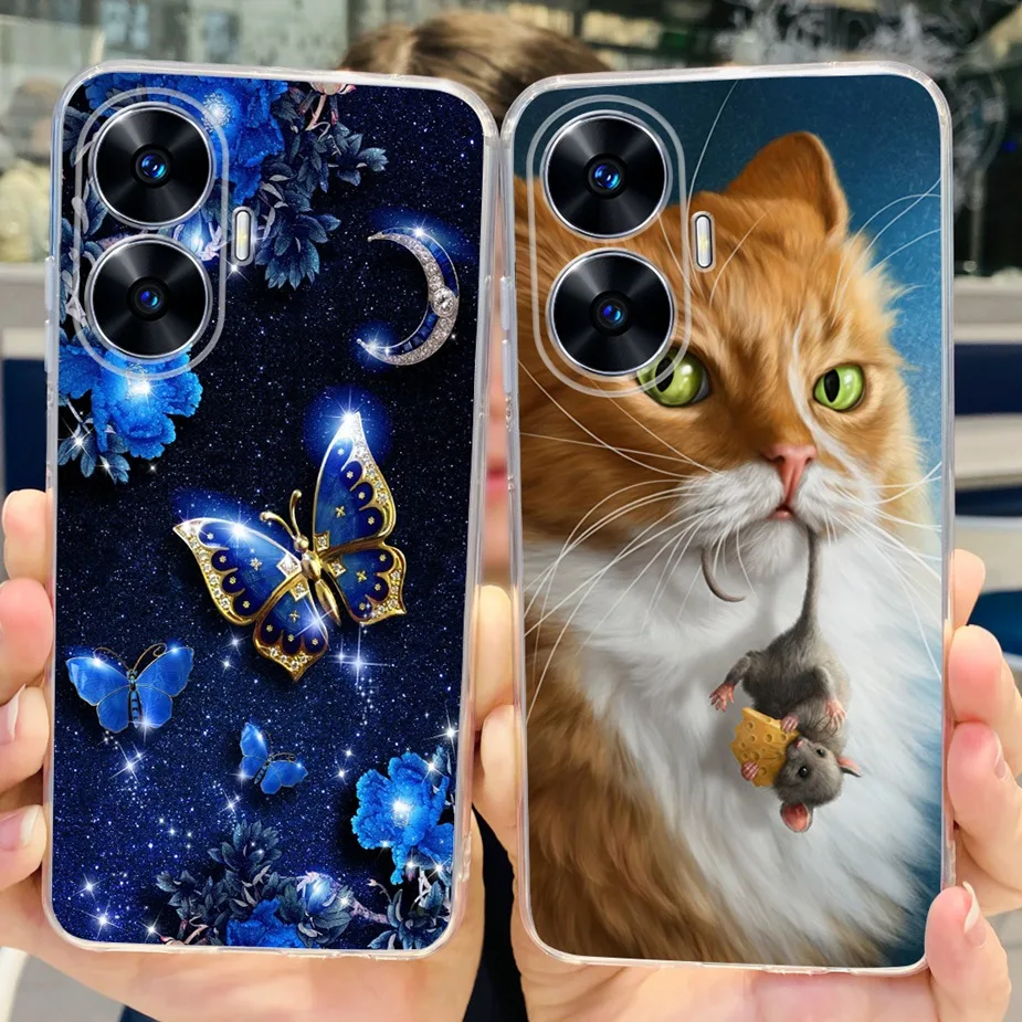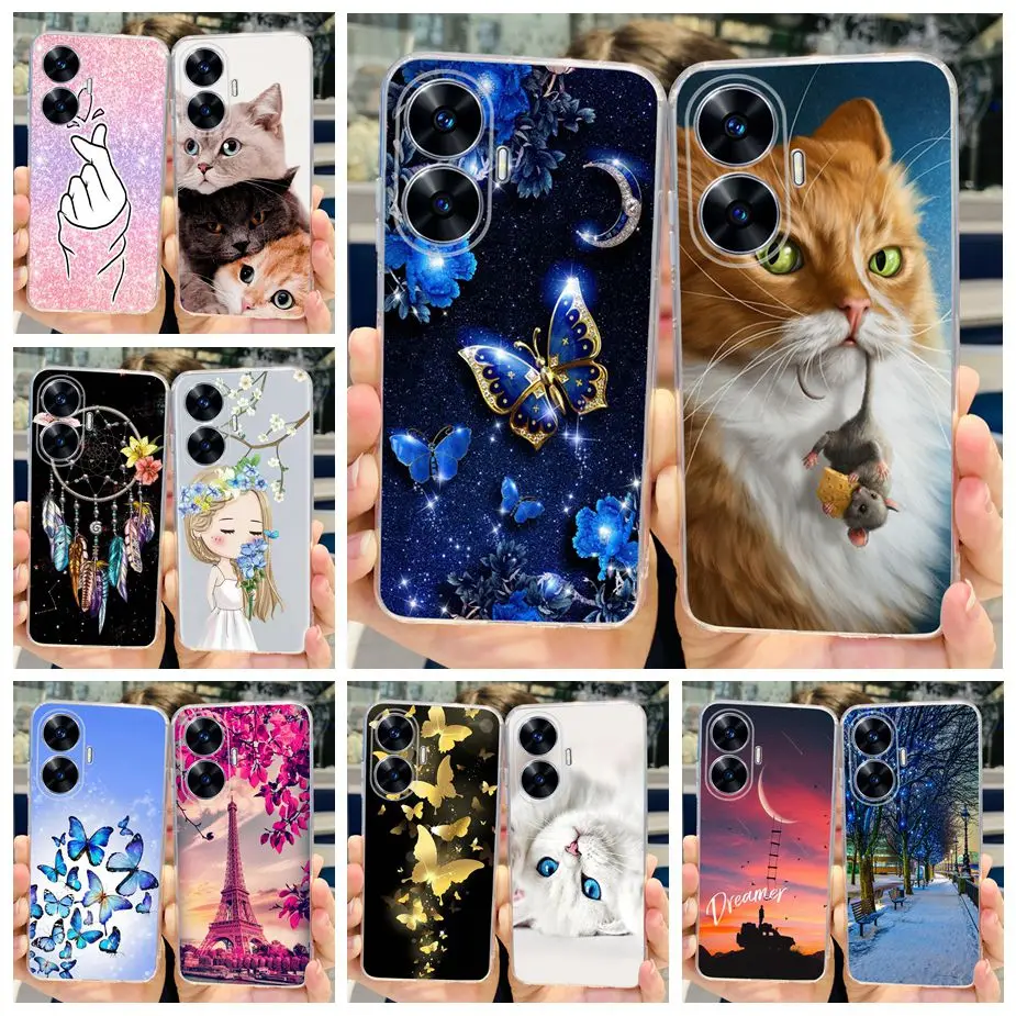 For Realme C55 4G Case 2023 Cute Cat Butterfly Cover Coque Soft Silicone Phone Case For Realme C55 C 55 RealmeC55 RMX3710 Bumper