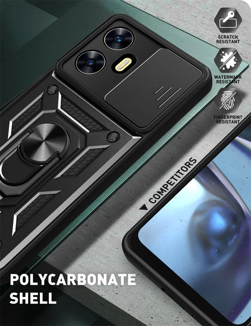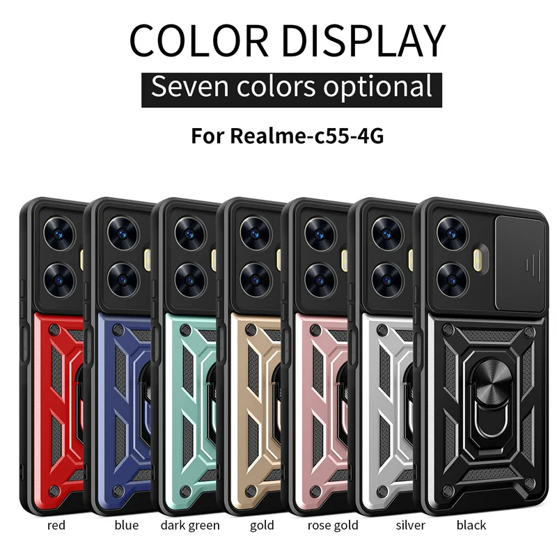 Comprar Para Realme C55 4G funda deslizante para cámara a prueba de golpes funda armadura para OPPO Realme C55 C 55 RealmeC55 soporte magnético anillo cubierta protectora