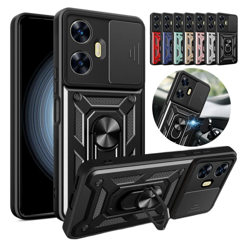 Comprar Para Realme C55 4G funda deslizante para cámara a prueba de golpes funda armadura para OPPO Realme C55 C 55 RealmeC55 soporte magnético anillo cubierta protectora