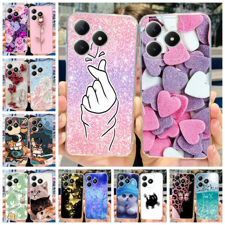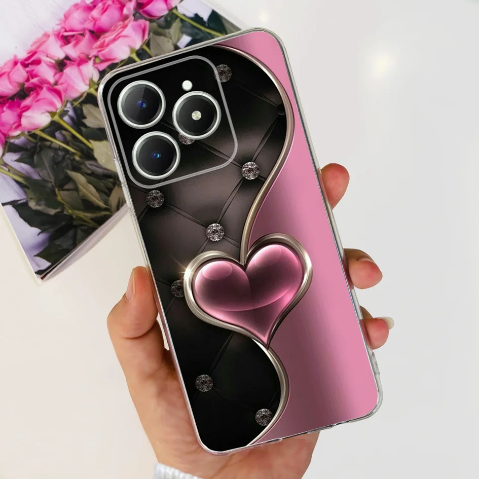 Comprar Para Realme C63 4G 2024 Funda RMX3939 Funda Linda corazón de amor Fundas protectoras de silicona transparente suave para Realme C61 4G C 61 C 63 Funda