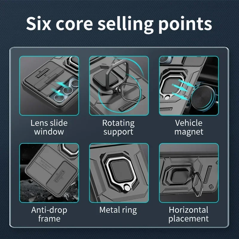 Comprar Para Realme C65 4G funda deslizante cámara a prueba de golpes armadura funda de teléfono para Realmi C65 C 65 65C RealmeC65 anillo magnético soporte contraportada