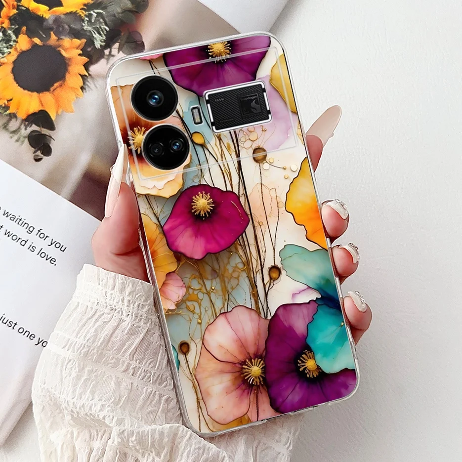 Para Realme GT5 funda RMX3823 cubierta pintada de flores coloridas funda de teléfono delgada suave para Realme GT5 240W GT 5 RealmeGT5 Fundas parachoques